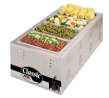 Elevate dining with pure elegance using the APW Wyott CW-3A Food Pan Warmer/Rethermalizer. This electric countertop unit is designed for commercial restaurant use, offering a generous 28-1/2 quart capacity in a 4/3 size. The thermostatic control ensures precise temperature regulation, while the knob guards provide added safety. Crafted with stainless steel construction, this food pan warmer/rethermalizer is built to withstand the demands of a busy kitchen. With its UL and CE certifications, you can trust in its quality and reliability. Whether you're keeping soups, sauces, or other dishes warm, this APW Wyott unit delivers consistent results. Its compact design allows for easy placement on any countertop, making it a versatile addition to your restaurant's kitchen. Enhance your culinary offerings and impress your customers with the APW Wyott CW-3A Food Pan Warmer/Rethermalizer.