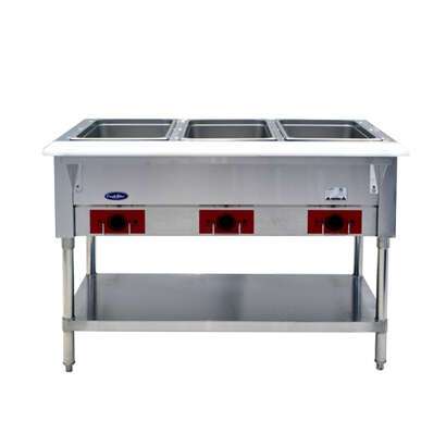Streamline your restaurant cooking operations with the Atosa USA, CSTEA-3C Electric Hot Food Table. This high-quality steam table is designed to meet the demands of a busy commercial kitchen. With its three open pan wells, you can easily keep your food warm and ready to serve. The individual infinite temperature controls allow you to adjust the heat for each well, ensuring that your dishes are kept at the perfect temperature. The insulated compartments help to retain heat and prevent energy loss, while the stainless steel construction ensures durability and easy cleaning. The cutting board shelf and undershelf provide additional workspace and storage options. With 500 watts per well and a 120v/60/1-ph power supply, this steam table is both efficient and reliable. Trust Atosa USA to deliver a top-notch product that will enhance your restaurant's efficiency and productivity.