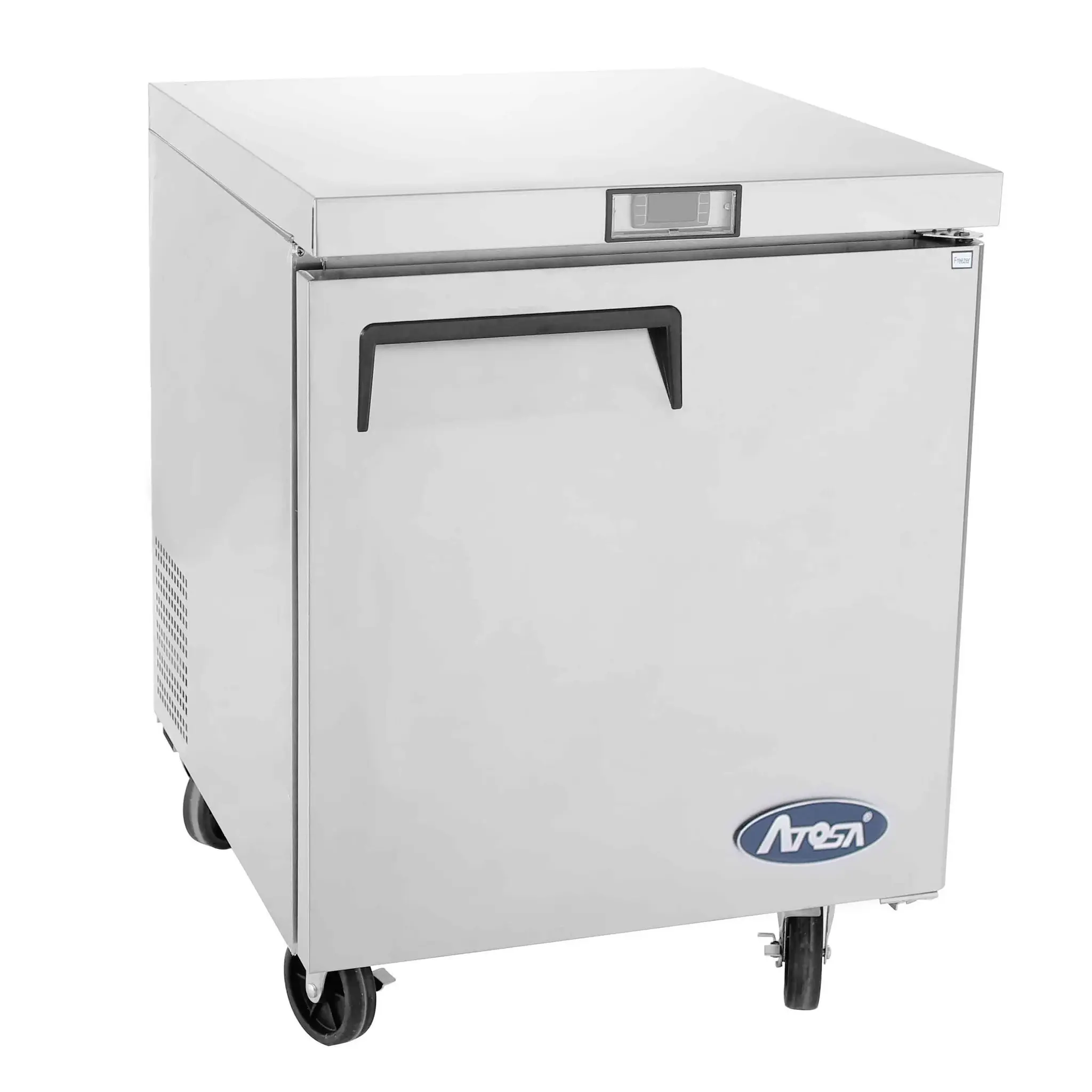 Revolutionize your cooking setup with the Atosa USA MGF8405GR Freezer. This undercounter reach-in freezer is designed to meet the demands of a commercial restaurant, providing efficient and reliable refrigeration for your ingredients. With its compact size of 27-1/2"W x 30"D x 34-1/8"H, this freezer can easily fit under your countertop, saving valuable space in your kitchen. The rear-mounted self-contained refrigeration system ensures optimal cooling performance, while the digital temperature control allows you to set the temperature between -8°F to 0°F, keeping your food fresh and safe. The stainless steel interior and exterior not only provide durability but also make cleaning a breeze. The adjustable shelf allows for flexible storage options, and the automatic evaporation and electric defrost features ensure hassle-free maintenance. With its reliable performance and convenient features, the Atosa USA MGF8405GR Freezer is a must-have for any commercial restaurant.