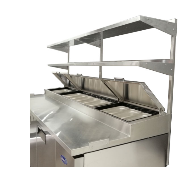 Revolutionize your cooking setup with the Atosa USA, MROS-93P Stainless Steel Double Overshelf for 67" Pizza Prep Table. This high-quality overshelf is designed to enhance the functionality of your pizza prep table, providing additional storage and workspace. Made from durable 18/430 stainless steel, this overshelf is built to withstand the demands of a busy commercial restaurant kitchen. The sound deadened construction ensures a quiet and efficient workspace, while the adjustable design allows you to customize the shelf height to suit your needs. With dimensions of 93"W x 14"D x 47"H, this double overshelf offers ample space for storing ingredients, utensils, and other kitchen essentials. NSF certified, this overshelf meets the highest standards of sanitation and safety. Upgrade your pizza prep table with the Atosa USA, MROS-93P Stainless Steel Double Overshelf and experience improved efficiency and organization in your restaurant kitchen.