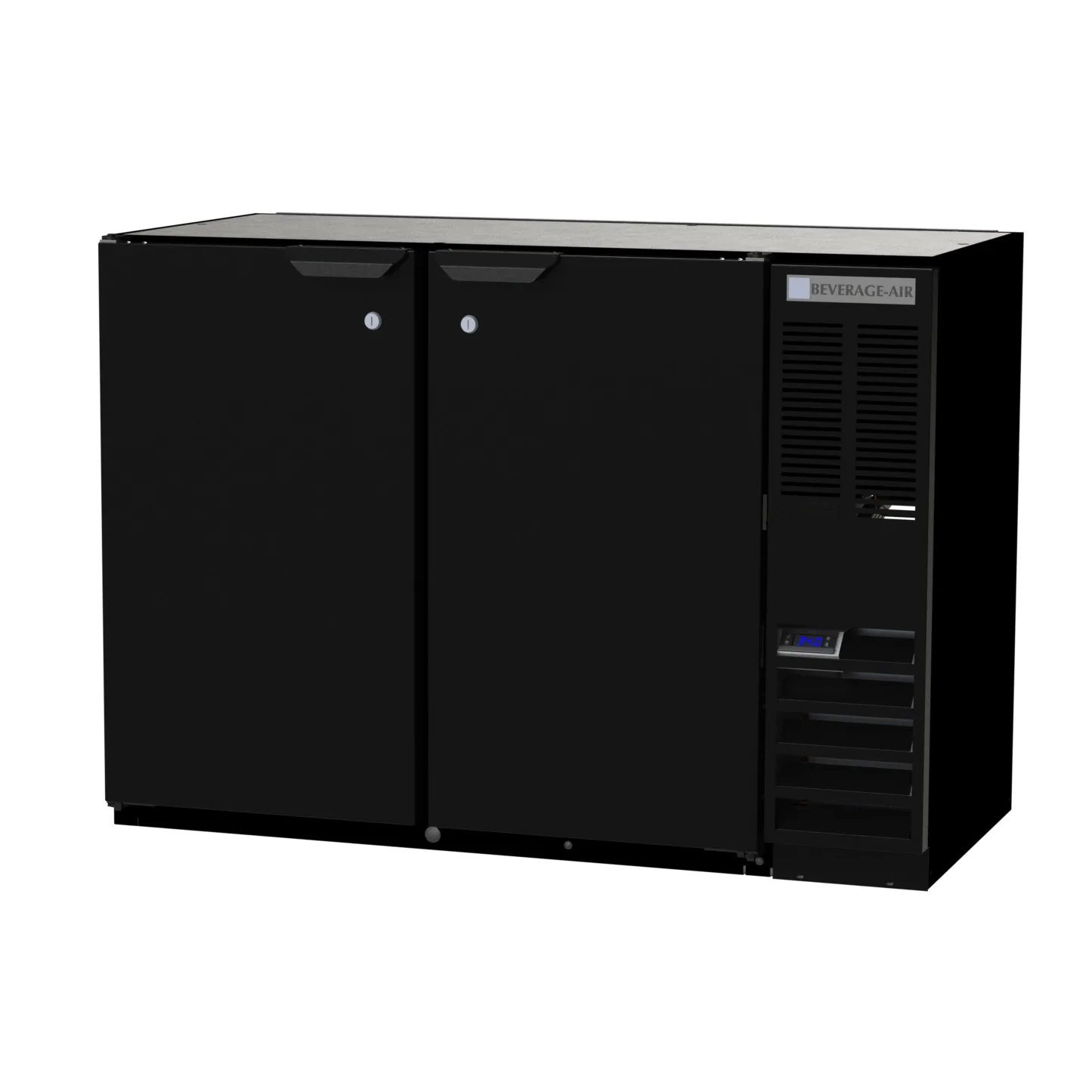 Equip your commercial kitchen with the Beverage Air BB48HC-1-B Back Bar Cabinet. This refrigerated storage cabinet is designed to meet the needs of busy restaurants and bars. With its two-section design and 12.4 cu. ft. capacity, it provides ample space for storing beverages and ingredients. The cabinet features two solid doors with snap-in door gaskets, ensuring a tight seal to keep your products fresh. Inside, you'll find four epoxy coated steel shelves that can accommodate two 1/2 barrel kegs. The LED interior lighting with a manual on/off switch makes it easy to locate items, even in low light conditions. The galvanized top and interior are durable and easy to clean, while the black exterior finish adds a sleek touch to your establishment. With its right-mounted self-contained refrigeration and R290 Hydrocarbon refrigerant, this cabinet is energy-efficient and environmentally friendly. Trust Beverage Air, a reputable brand known for its quality and reliability. Upgrade your kitchen with the Beverage Air BB48HC-1-B Back Bar Cabinet today.