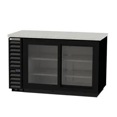 Realize kitchen dreams with the Beverage Air BB58HC-1-GS-B Back Bar Cabinet. This refrigerated storage cabinet is designed to meet the needs of commercial restaurants, offering ample space and convenient features. With a two-section design and a generous 21.86 cu. ft. capacity, it can accommodate two 1/2 barrel kegs, ensuring you have plenty of cold beverages on hand for your customers. The cabinet features two locking sliding glass doors, allowing you to easily access and display your drinks while keeping them secure. The LED interior lighting with a manual on/off switch ensures optimal visibility, even in dimly lit environments. Made in the USA with a stainless steel top and a sleek black exterior finish, this back bar cabinet not only delivers on functionality but also adds a touch of sophistication to your establishment. Trust Beverage Air to provide you with reliable and high-quality refrigeration solutions for your commercial kitchen.