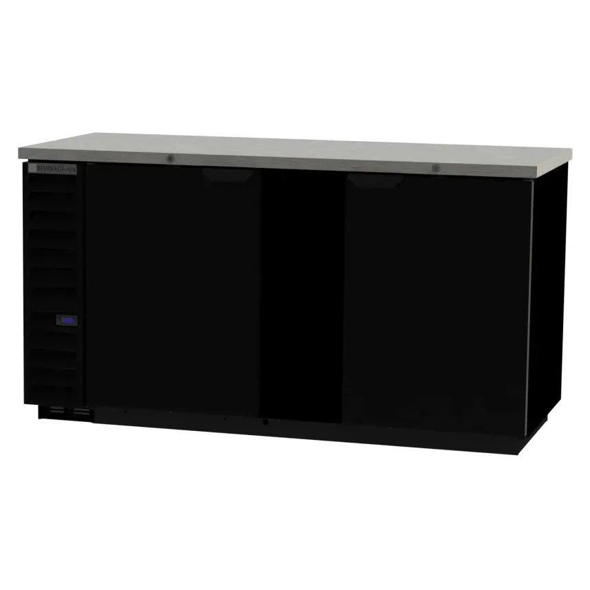 Equip your commercial kitchen with the Beverage Air BB68HC-1-F-B Back Bar Cabinet. This refrigerated storage cabinet is designed to meet the needs of busy restaurants, offering ample space and convenient features. With a two-section design and solid doors, it provides easy access to your beverages and ingredients. The snap-in door gasket ensures a tight seal, keeping your items fresh and cool. Inside, you'll find four epoxy coated steel shelves that can accommodate up to three 1/2 barrel kegs. The LED interior lighting illuminates the contents, making it easy to find what you need. The black exterior finish and stainless steel top give it a sleek and professional look, while the stainless steel interior with radius corners is easy to clean and meets NSF Standard 7 for open food containers. The left-mounted self-contained refrigeration system provides efficient cooling, and the storage above allows for additional organization. Made in the USA and certified by cULus and UL-Sanitation, this Beverage Air Back Bar Cabinet is a reliable and durable choice for any commercial restaurant.