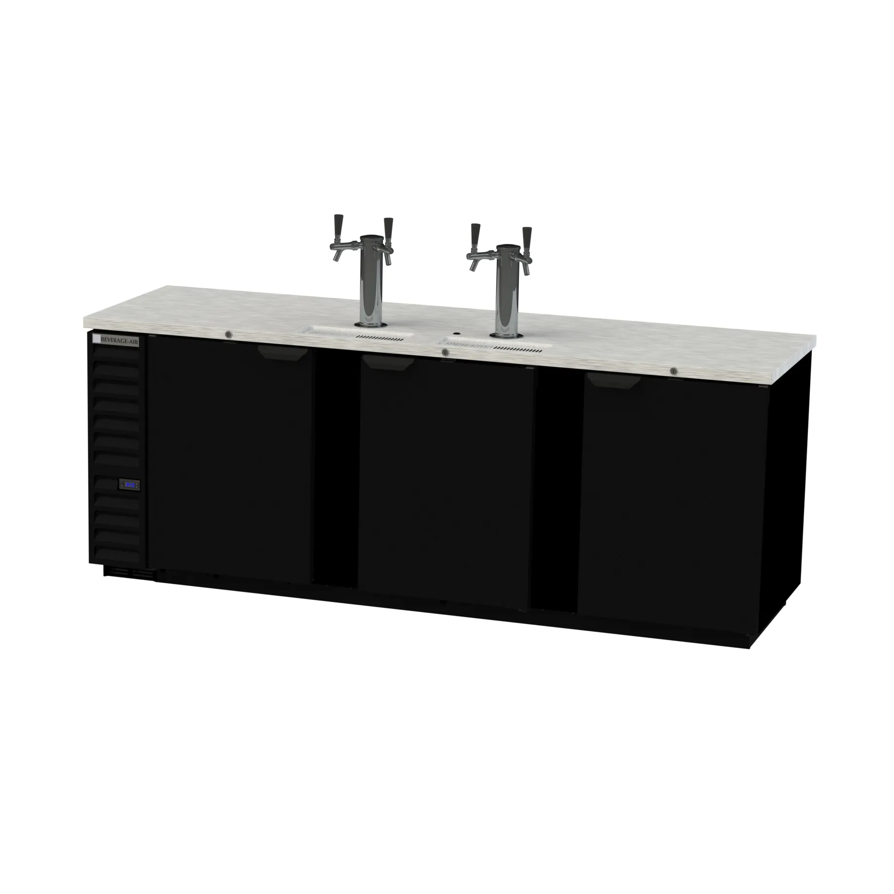 Deliver food perfection with the Beverage Air DD94HC-1-B Draft Beer Cooler. This top-of-the-line cooler is designed to meet the needs of commercial restaurants, ensuring that your draft beer is always served at the perfect temperature. With its spacious 37.82 cu. ft. capacity and five keg capacity, you'll have plenty of room to store and serve a wide variety of beers. The three doors feature door locks for added security, while the galvanized interior with a reinforced stainless steel floor ensures durability and easy cleaning. The black exterior and stainless steel top give this cooler a sleek and professional look that will enhance the aesthetics of your restaurant. Plus, the self-contained refrigeration system and R290 Hydrocarbon refrigerant provide efficient cooling while being environmentally friendly. Trust Beverage Air, a reputable vendor known for their high-quality products made in the USA, to deliver the best draft beer cooler for your commercial restaurant.