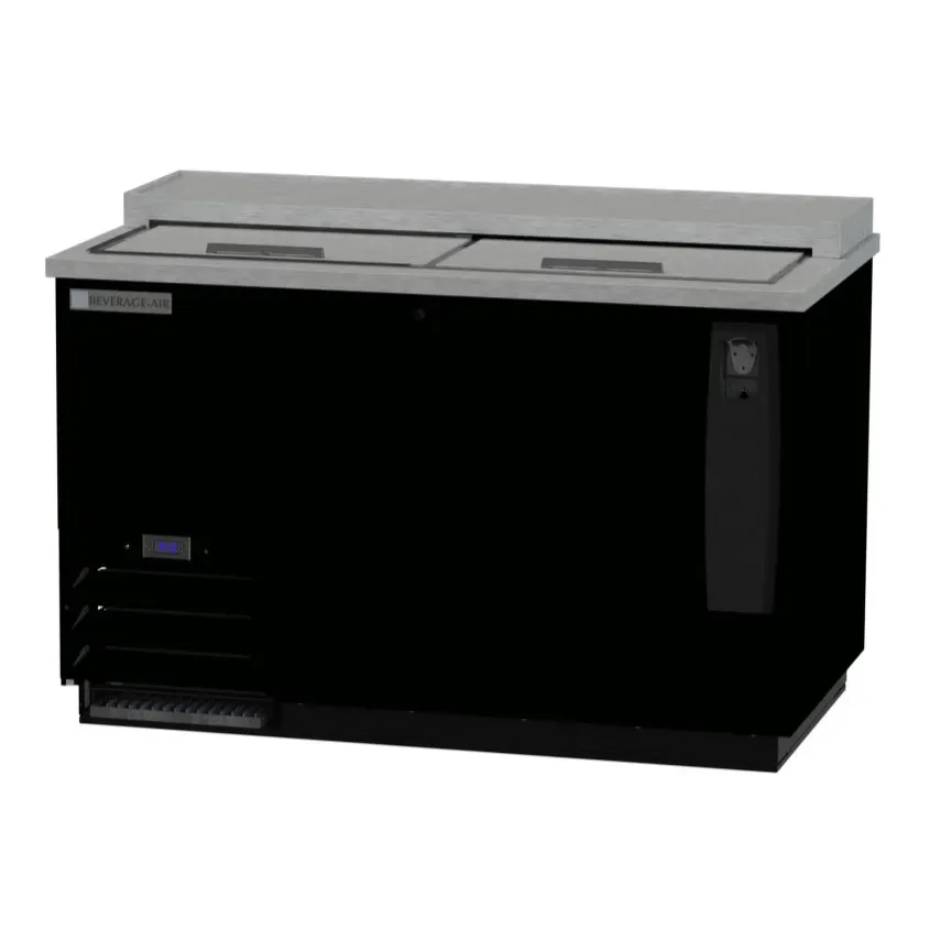 Streamline your restaurant cooking operations with the Beverage Air DW49HC-B Bottle Cooler. This sleek and efficient cooler is designed to optimize your beverage storage and serving capabilities. With a spacious 13.7 cu. ft. capacity, this cooler can hold up to 17-1/2 cases of 12 oz. bottles or 23-3/4 cases of 12 oz. cans, ensuring that you always have plenty of cold drinks on hand for your customers. The deep well design and adjustable wire dividers make it easy to organize and access your beverages, while the sliding lids provide convenient and efficient service. The black vinyl exterior and galvanized interior not only give this cooler a stylish look but also ensure its durability and longevity. Additionally, the self-contained refrigeration system and R290 Hydrocarbon refrigerant guarantee optimal cooling performance while being environmentally friendly. Trust in the Beverage Air DW49HC-B Bottle Cooler to enhance your restaurant's beverage service and keep your customers satisfied.