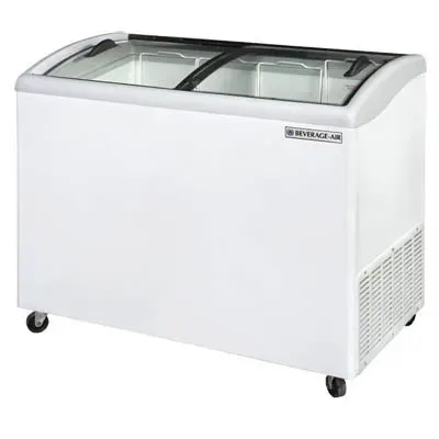 Experience kitchen innovation with the Beverage Air NC43HC-1-W Chest Freezer. This commercial-grade freezer is designed to meet the demands of a busy restaurant kitchen. With a 7.63 cu. ft. capacity and an angled top design, it maximizes storage space while providing easy access to your frozen goods. The two removable glass lids not only allow for quick visibility of the contents but also come with lid locks and keys for added security. The four removable baskets help organize your items, while the adjustable thermostat control ensures optimal temperature settings. The integrated tag molding allows for easy labeling and organization. With LED lighting and a pre-painted white steel cabinet finish, this freezer not only looks sleek but also provides excellent visibility. The maintenance-free condenser and R290 Hydrocarbon refrigerant ensure efficient and eco-friendly operation. Move it around effortlessly with the 2" casters. Trust Beverage Air, a leading vendor in commercial refrigeration, to deliver quality and reliability with the NC43HC-1-W Chest Freezer.