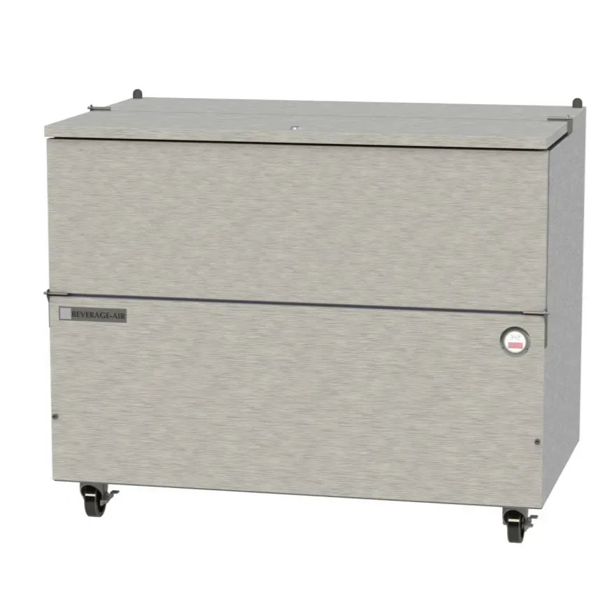 Invest in superior quality with the Beverage Air SM49HC-S Milk Cooler / Station. This school milk cooler is designed to meet the demands of a commercial restaurant, ensuring that your milk stays at the perfect temperature for serving. With a spacious 20.32 cu. ft. capacity, this cooler can hold up to (12) 13" x 13" x 11" cartons or (8) 19" x 13" x 11" cartons, providing ample storage space for your milk supply. The self-latching doors/lids with safety bumpers and cylinder lock ensure that your milk is secure and protected. The stainless steel interior and exterior not only give this cooler a sleek and professional look, but also make it easy to clean and maintain. The electronic control and auto defrost features make operation a breeze, while the R290 Hydrocarbon refrigerant and 1/3 HP compressor ensure efficient and reliable cooling. Trust in the Beverage Air SM49HC-S Milk Cooler / Station to keep your milk fresh and ready for serving in your commercial restaurant.