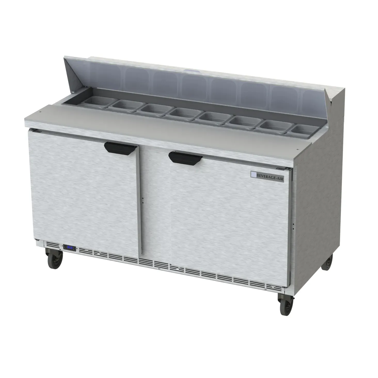 Fuel your restaurant's success with the Beverage Air SPE60HC-16 Refrigerated Counter, Sandwich / Salad Unit. This two-section counter is designed to meet the demands of a busy commercial kitchen. With a spacious 60"W size and a 16.02 cu. ft. capacity, it provides ample storage space for your ingredients and supplies. The stainless steel top features an opening for 16 1/6 size pans, allowing you to easily access and organize your ingredients. The unit also comes with a convenient 10" cutting board for food preparation. With four shelves and two doors, you can keep your items organized and easily accessible. The stainless steel exterior is not only durable but also adds a sleek and professional look to your kitchen. The rear-mounted self-contained refrigeration system ensures efficient cooling, while the R290 Hydrocarbon refrigerant is environmentally friendly. Trust in the quality and reliability of Beverage Air, a trusted name in commercial refrigeration. Upgrade your kitchen with the Beverage Air SPE60HC-16 Refrigerated Counter, Sandwich / Salad Unit and experience enhanced efficiency and productivity.
