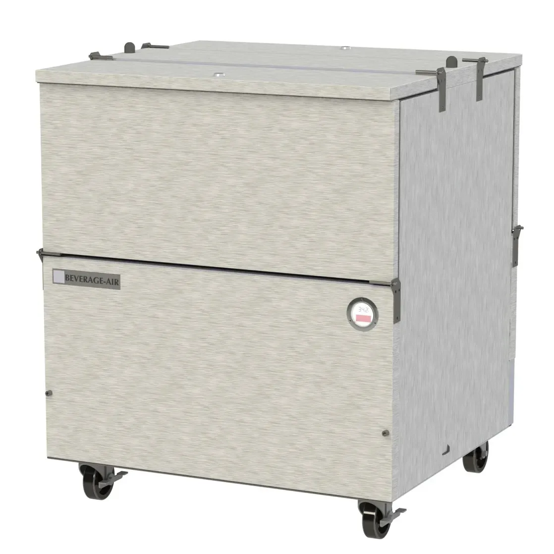 Elevate your cuisine with the Beverage Air ST34HC-S Milk Cooler / Station. This high-quality milk cooler is designed to meet the needs of commercial restaurants, ensuring that your milk stays fresh and easily accessible. With a spacious 12.37 cu. ft. capacity and dual access, this cooler can accommodate either (8) 13" x 13" x 11" cartons or (4) 19" x 13" x 11" cases, providing ample storage space for your milk products. The self-latching doors/lids with safety bumpers and cylinder lock ensure the safety and security of your inventory. The stainless steel interior and exterior not only give this cooler a sleek and professional look but also make it easy to clean and maintain. With electronic control and auto defrost features, this cooler offers convenience and efficiency. Made in the USA and certified by cULus, UL EPH Classified, and UL-Sanitation, you can trust the quality and reliability of the Beverage Air ST34HC-S Milk Cooler / Station.