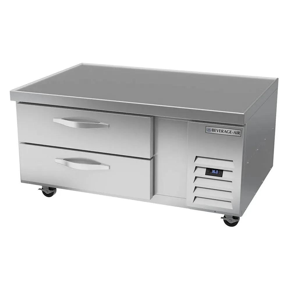 Enhance your culinary workspace with our state-of-the-art Worktop Cook Stand Refrigerator, designed for efficiency and durability in any professional kitchen. Crafted with a fire-proof stainless steel top, front, and sides, this refrigerator eliminates the need for a heat shield, ensuring seamless integration into your cooking environment. Measuring 48 inches wide, it offers a spacious 8.59 cubic feet of storage capacity, thoughtfully divided into two robust drawers. Each drawer is engineered to accommodate two 12" x 20" x 6" pans, maximizing your storage options and streamlining your food preparation process. The top-notch aluminum interior complements its side-mounted self-contained refrigeration, utilizing eco-friendly R290 Hydrocarbon refrigerant to maintain optimal temperature with a powerful 1/6 HP motor. Featuring a full marine drip guard, this unit protects against spills and debris, further enhancing its reliability and ease of use. This product meets the highest industry standards, being cULus, UL EPH Classified, and UL-Sanitation approved, and is proudly made in the USA. Elevate your kitchen's functionality and sustainability with a refrigerator that embodies quality and innovation, built to withstand the demands of the busiest culinary professionals.