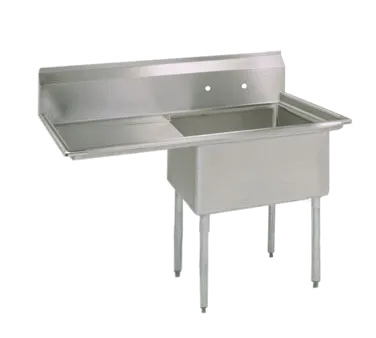 Equip your kitchen for success with the BK Resources, BKS-1-1620-12-18L Sink. This one-compartment sink is designed to meet the demands of a busy commercial restaurant. With its 18/304 stainless steel construction, it offers durability and resistance to corrosion, ensuring long-lasting performance. The sink features a 16" wide x 20" front-to-back x 12" deep compartment, providing ample space for washing dishes, utensils, and other kitchen essentials. The 18" drainboard on the left side offers convenient drying and storage space. The 9" high backsplash helps to prevent water splashes and spills, keeping your kitchen clean and safe. The sink also includes an 8" OC splash mount faucet holes, allowing for easy installation of a faucet. With its galvanized steel legs and adjustable high impact corrosion resistant feet, this sink is stable and can be adjusted to suit your kitchen's needs. NSF certified, this BK Resources sink is a reliable choice for any commercial restaurant.