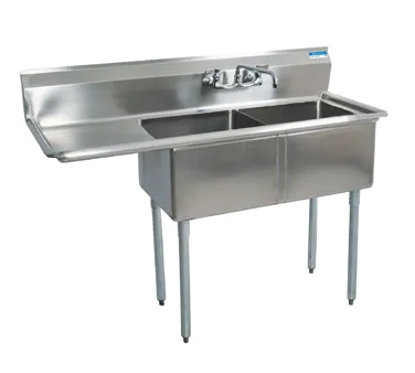 Introducing the BK Resources, BKS-2-1620-12-18L Sink, designed to simplify restaurant operations. This two-compartment sink is a must-have for any commercial restaurant, offering convenience and efficiency in one package. With its 16" wide x 20" front-to-back x 12" deep compartments, this sink provides ample space for washing and rinsing dishes, utensils, and cookware. The 18" drainboard on the left side allows for easy drying and organization, while the 9" backsplash helps maintain a clean and sanitary workspace. The 1-1/2" rolled edges on the front and sides ensure durability and prevent spills, while the included basket drains (BKDR-4) make cleanup a breeze. Made from 18/304 stainless steel, this sink is built to withstand the demands of a busy restaurant kitchen. The galvanized steel legs with adjustable high impact corrosion-resistant feet provide stability and durability. NSF certified, this sink meets the highest standards of cleanliness and sanitation. Upgrade your restaurant's kitchen with the BK Resources, BKS-2-1620-12-18L Sink and experience the convenience and efficiency it brings to your daily operations.