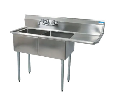Mobilize your kitchen with the BK Resources, BKS-2-1620-12-18R Sink. This two-compartment sink is designed to meet the demands of a busy commercial restaurant. With its 16" wide x 20" front-to-back x 12" deep compartments, it provides ample space for washing and rinsing dishes. The 18" drainboard on the right side allows for convenient drying and stacking of clean dishes. The sink is made of durable 18/304 stainless steel construction, ensuring long-lasting performance in a demanding kitchen environment. The 9" high backsplash helps to prevent water splashes and spills, keeping your kitchen clean and safe. The sink also features 1-1/2" rolled edges on the front and sides, providing added strength and durability. With its galvanized steel legs and adjustable high impact corrosion-resistant feet, this sink is built to withstand heavy use. NSF certified, this BK Resources sink is a reliable and essential addition to any commercial restaurant kitchen.