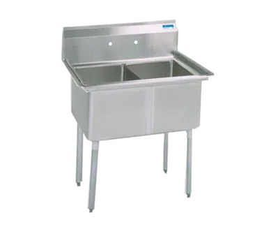Invest in superior quality with the BK Resources, BKS-2-1620-12 Sink, (2) Two Compartment. This sink is designed to meet the demands of a busy commercial restaurant, offering durability and functionality. Made with 18/304 stainless steel construction, it ensures long-lasting performance and easy maintenance. The two compartments, measuring 16" wide x 20" front-to-back x 12" deep, provide ample space for washing and rinsing dishes, utensils, and cookware. The 9" backsplash and 8" OC splash mount faucet holes help to keep the surrounding area clean and dry. With 1-1/2" rolled edges on the front and sides, this sink offers added strength and safety. It also includes basket drains (BKDR-4) for efficient water drainage. The galvanized steel legs with adjustable high impact corrosion resistant feet provide stability and support. NSF certified, this sink meets the highest standards of cleanliness and sanitation. Upgrade your restaurant's kitchen with the BK Resources, BKS-2-1620-12 Sink, (2) Two Compartment.