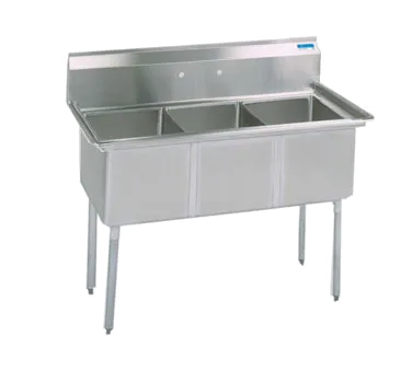 Experience kitchen innovation with the BK Resources, BKS-3-1620-12 Sink, (3) Three Compartment. This sink is designed to meet the demands of a busy commercial restaurant, offering functionality and durability. With its 16" wide x 20" front-to-back x 12" deep compartments, it provides ample space for washing and rinsing dishes, utensils, and cookware. The 1-1/2" rolled edges on the front and sides ensure strength and prevent water from splashing onto the floor. The sink also features a 9" backsplash and 8" OC splash mount faucet holes, making it easy to install and maintain. Made of 18/304 stainless steel, this sink is resistant to corrosion and built to last. The galvanized steel legs and adjustable high impact corrosion-resistant feet provide stability and support. Additionally, the sink includes basket drains (BKDR-4) for efficient water drainage. NSF certified, this BK Resources sink guarantees safety and hygiene in your commercial kitchen. Upgrade your restaurant's kitchen with the BK Resources, BKS-3-1620-12 Sink, (3) Three Compartment.
