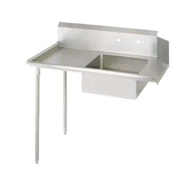 Take your kitchen to the next level with the BK Resources BKSDT-72-L Soiled Dishtable. This straight design dishtable is perfect for commercial restaurant use, offering a spacious 72"W x 30-3/8"D x 46-1/4"H size that can accommodate high-volume operations. The 18/304 stainless steel top ensures durability and easy cleaning, while the 10"H backsplash prevents water and debris from splashing onto surrounding surfaces. The dishtable features a convenient 20" x 20" x 8" deep pre-rinse sink, complete with an 8" OC splash mount faucet holes for added functionality. With raised rolled edges on the front and side, this dishtable provides extra protection against spills and messes. The included basket drain (BKDR-4) helps to keep your workspace clean and organized. Supported by galvanized steel legs and side bracing, this dishtable is built to withstand the demands of a busy restaurant kitchen. The high impact corrosion resistant adjustable bullet feet ensure stability and prevent wobbling. NSF certified, this BK Resources dishtable is a reliable and essential addition to any commercial kitchen.