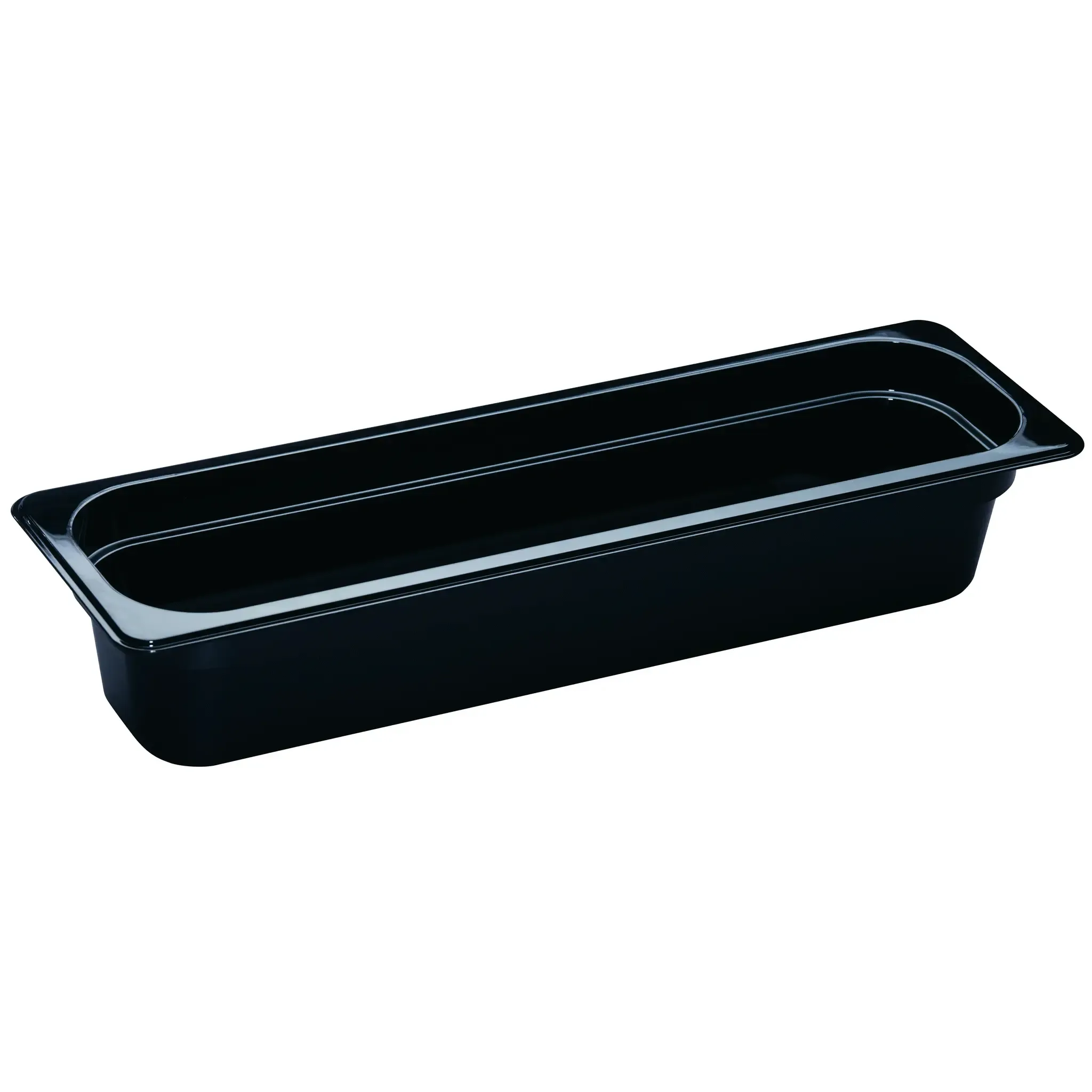 Seamless solutions for food optimization. Introducing the Cambro 24LPHP110 Food/Beverage Storage Container, a must-have for commercial restaurants. This container is designed to enhance your food storage and organization, ensuring freshness and efficiency. The 1/2 X 4" H-Pan Long Black food pan is made of durable materials, guaranteeing long-lasting performance. Its sleek design allows for easy stacking, maximizing storage space. This food/beverage storage container is an essential tool for any commercial restaurant, providing a convenient and hygienic solution for storing and transporting food. Say goodbye to messy and disorganized storage areas and hello to streamlined efficiency with the Cambro 24LPHP110 Food/Beverage Storage Container. Upgrade your restaurant's food storage system today!