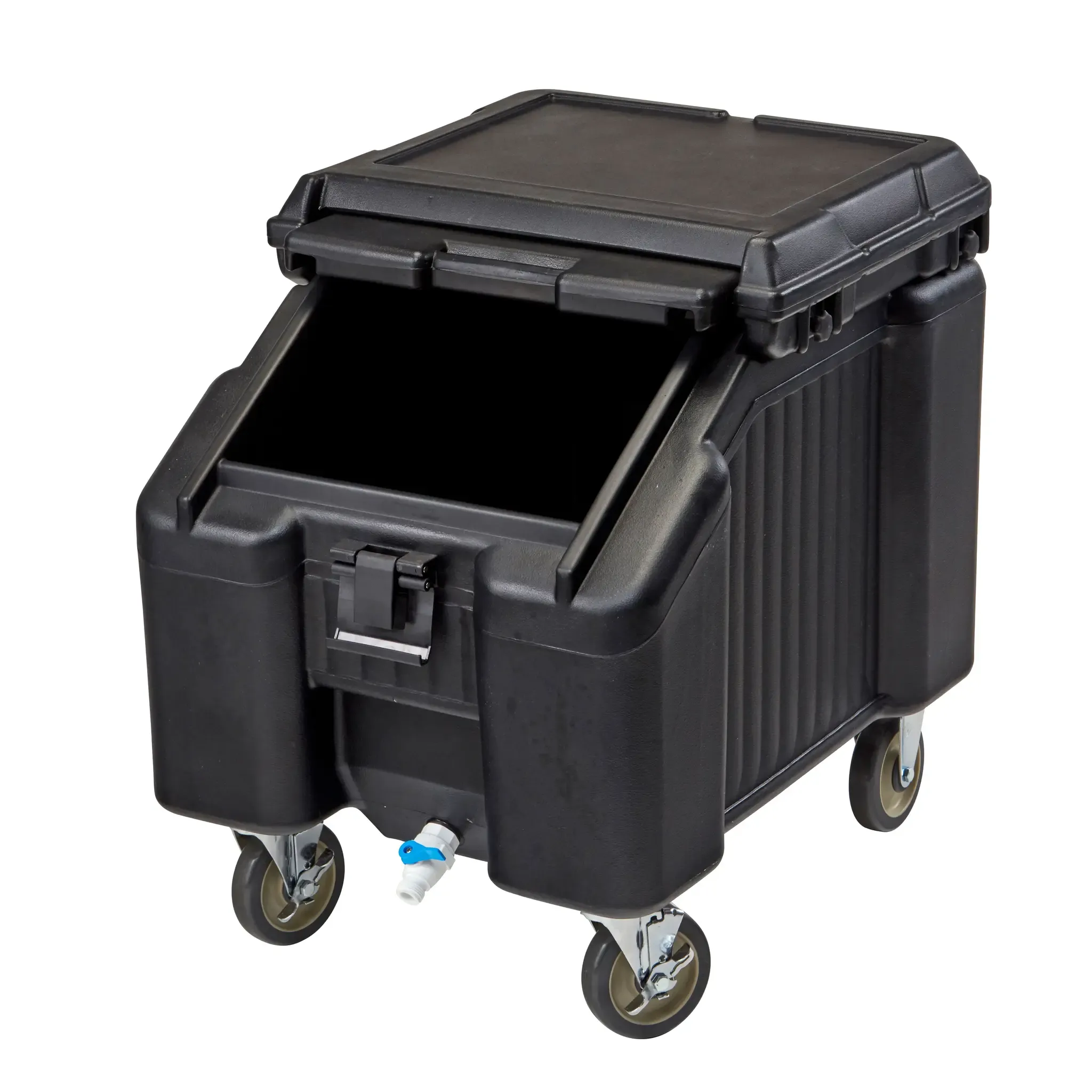 Efficiency and excellence daily. Introducing the Cambro ICS100L110 Ice Caddy, the perfect solution for commercial restaurants seeking to streamline their ice storage and transportation. With a 100-pound capacity, this ice caddy ensures an ample supply of ice for your busy establishment. The caddy features two front swivel and two rear fixed wheels, allowing for easy maneuverability and stability, even in tight spaces. Its sleek black design adds a touch of sophistication to any kitchen or bar area. Whether you're serving refreshing beverages or creating culinary masterpieces, this ice caddy is a must-have for any commercial restaurant. Don't compromise on efficiency choose the Cambro ICS100L110 Ice Caddy and elevate your restaurant's ice storage capabilities.