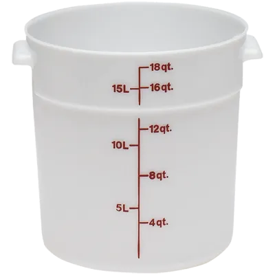 Elevate dining experience daily with Cambro's RFS18148 Food/Beverage Storage Container. Designed for commercial restaurant use, this round 18-quart poly white container is a must-have for any food establishment. The durable construction ensures long-lasting performance, even in the busiest kitchen environments. Its tight-sealing lid prevents leaks and spills, keeping your food secure during transportation. This storage container is perfect for storing a variety of food and beverage items, from prepped ingredients to sauces and dressings. Its compact size allows for easy stacking, maximizing storage space in your kitchen. Whether you're a small café or a bustling restaurant, the Cambro RFS18148 Food/Beverage Storage Container is a reliable and efficient solution for all your storage needs. Trust Cambro to deliver quality and convenience to your commercial kitchen.