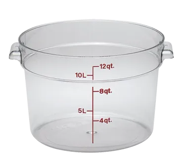 Transform kitchen service with solutions like the Cambro RFSCW12135 Food/Beverage Storage Container. Designed by Cambro, a trusted vendor in the food and beverage storage container category, this container is a game-changer for commercial restaurants. With a capacity of 12 quarts, it provides ample space to store and organize ingredients, ensuring efficient kitchen operations. The clear Camwear material allows for easy visibility, making it simple to identify contents and minimize waste. Its durable construction ensures long-lasting use, even in busy kitchen environments. Whether you need to store prepped ingredients, leftovers, or bulk supplies, the Cambro RFSCW12135 Food/Beverage Storage Container is a reliable and practical choice. Elevate your restaurant's storage capabilities and streamline your operations with this essential kitchen tool.