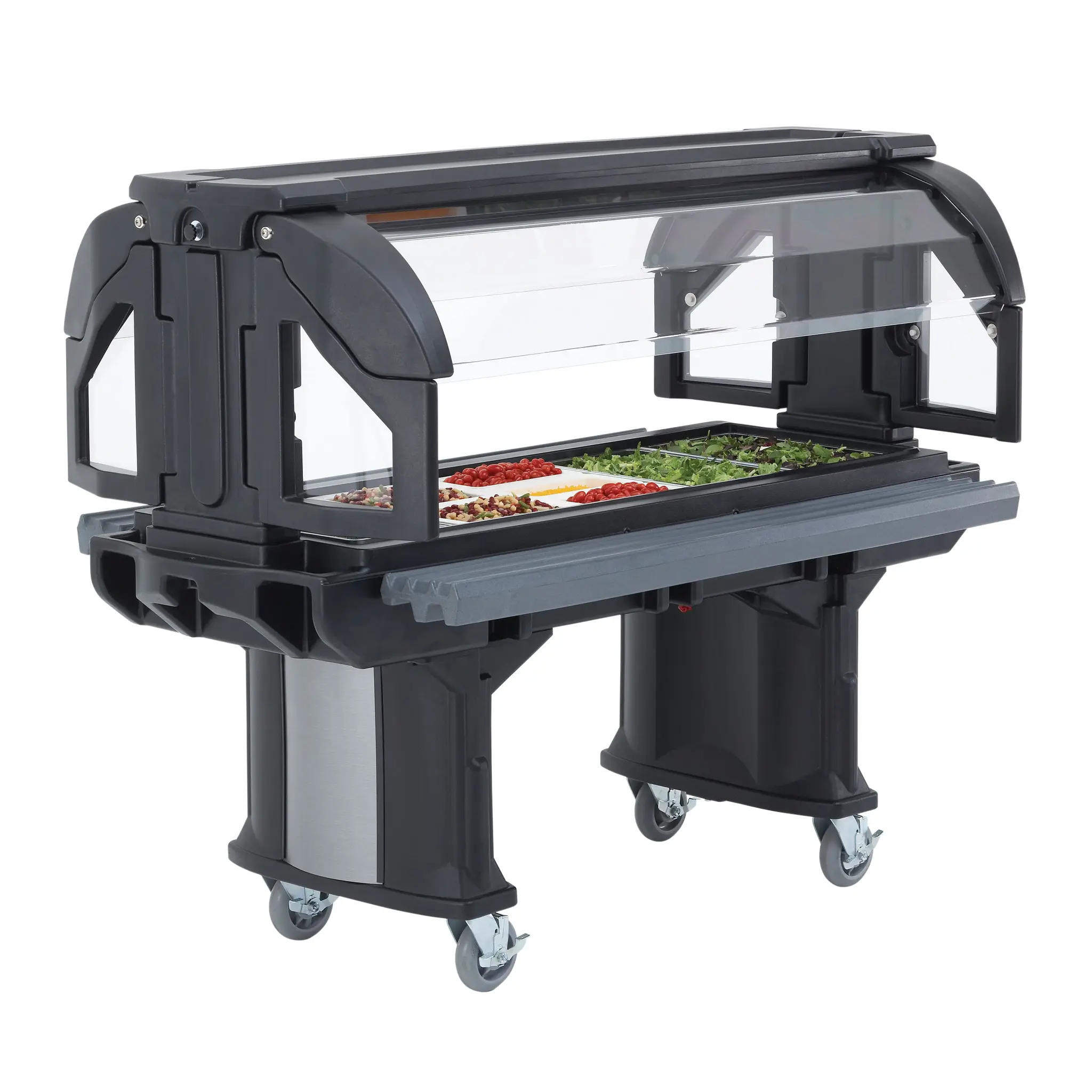 Upgrade your food service with the Cambro VBR5110 Food Stands/Displays. This versatile and durable food bar is perfect for commercial restaurant use. With its sleek black design and standard casters, it not only adds a touch of elegance to your establishment but also allows for easy mobility. Made by Cambro, a trusted name in the industry, this food stand/display is built to last and withstand the demands of a busy restaurant environment. Upgrade your restaurant's food service with the Cambro VBR5110 Food Stands/Displays and impress your customers with a visually appealing and organized food display.