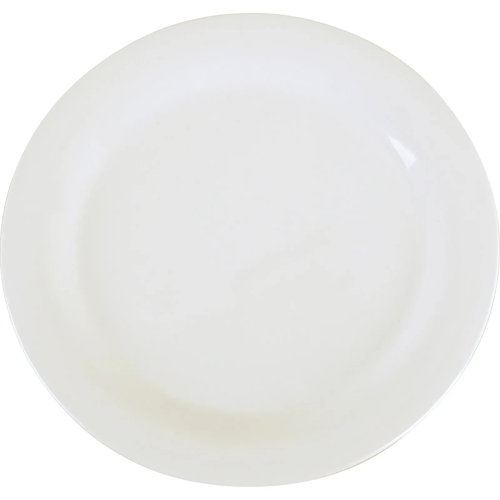 Elevate with top-notch kitchen tools. Introducing the Carlisle 3300202 Plate, Plastic. Designed for commercial restaurant use, this plate is a must-have for any food establishment. With its narrow rim and elevated foot design, it adds a touch of elegance to your table setting while ensuring stability. Made from durable melamine, this plate is break-resistant and can withstand the rigors of a busy kitchen. It is also dishwasher safe, making cleanup a breeze. The plate's white color complements any food presentation, allowing your culinary creations to take center stage. Additionally, it is BPA-free and NSF certified, guaranteeing its safety and quality. Upgrade your dining experience with the Carlisle 3300202 Plate, Plastic, and impress your customers with style and functionality.