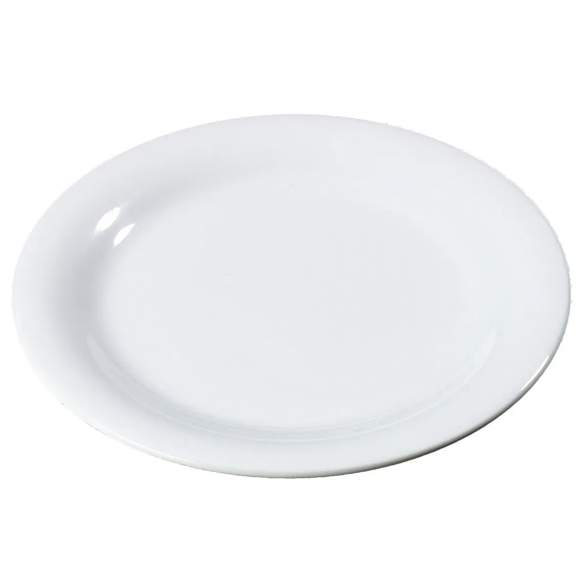 Experience the difference with top-tier essentials. Introducing the Carlisle 3300402 Plate, Plastic. Designed for commercial restaurant use, this plate is a must-have for any foodservice establishment. With its narrow rim and elevated foot design, it offers a sleek and modern look that will impress your guests. Made from durable melamine, this plate is break resistant and can withstand temperatures up to 212F, making it perfect for serving hot or cold dishes. Its dishwasher-safe feature ensures easy and convenient cleaning, saving you time and effort. The plate's white color adds a touch of elegance to any table setting, while its BPA-free and NSF certifications guarantee its safety and quality. Upgrade your dining experience with the Carlisle 3300402 Plate, Plastic.
