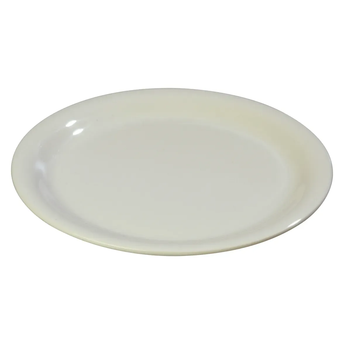 Optimize workflow with high-quality equipment like the Carlisle, 3300642, Plate, Plastic. Designed for commercial restaurant use, this plate is a game-changer in terms of durability and functionality. Made from melamine, it is break-resistant and can withstand temperatures up to 212F, making it safe for use in various foodservice applications. The narrow rim and elevated foot design add a touch of elegance to any table setting, while the bone color adds a sophisticated touch. The plate is dishwasher safe, allowing for easy and efficient cleaning, saving valuable time in a busy restaurant environment. Trust Carlisle, a reputable vendor in the industry, to provide you with top-notch quality and reliability. Upgrade your restaurant's tableware with the Carlisle, 3300642, Plate, Plastic.