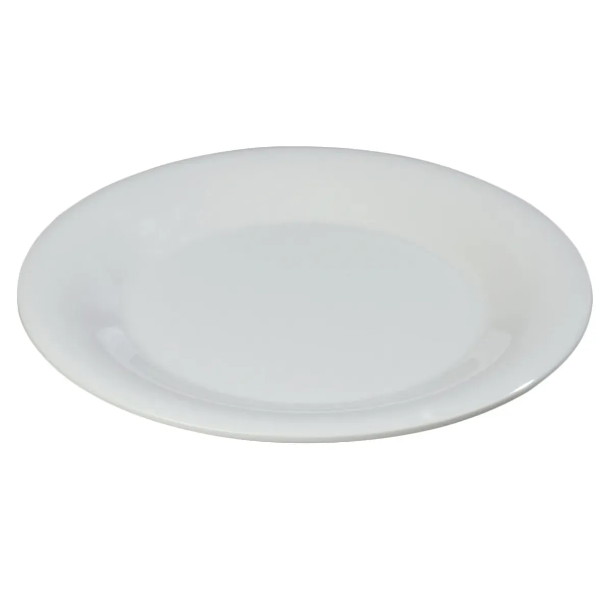Equip for success with essential tools like the Carlisle, 3301202, Plate, Plastic. Designed for commercial restaurant use, this plate is a must-have for any food establishment. With a 9" diameter and wide rim, it provides ample space for serving a variety of dishes. The elevated foot design ensures stability on any surface, while the break-resistant melamine construction guarantees durability, even in high-traffic environments. This plate is dishwasher safe, making cleanup a breeze. It also resists drawing heat or cold from food, keeping your dishes at the perfect temperature. The white color adds a touch of elegance to any table setting, and the BPA-free and NSF certifications ensure the highest standards of safety and quality. Upgrade your dining experience with the Carlisle, 3301202, Plate, Plastic.