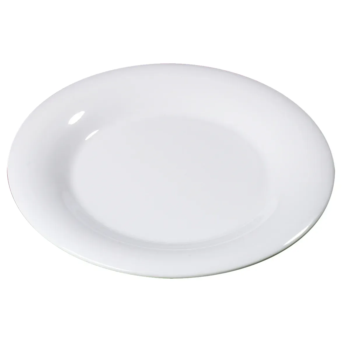 Boost functionality with quality tools with the Carlisle, 3302402, Plate, Plastic. This Sierrus Dinner Plate is designed to enhance the dining experience in commercial restaurants. With a wide rim and a 12" diameter, it provides ample space for presenting delicious meals. The elevated foot design adds a touch of elegance to any table setting, while the white melamine material ensures durability and break resistance. This plate is also dishwasher safe, making it easy to clean and maintain. Additionally, it resists drawing heat or cold from food, keeping dishes at the perfect temperature for longer. As a BPA-free and NSF-certified product, it meets the highest standards of safety and quality.