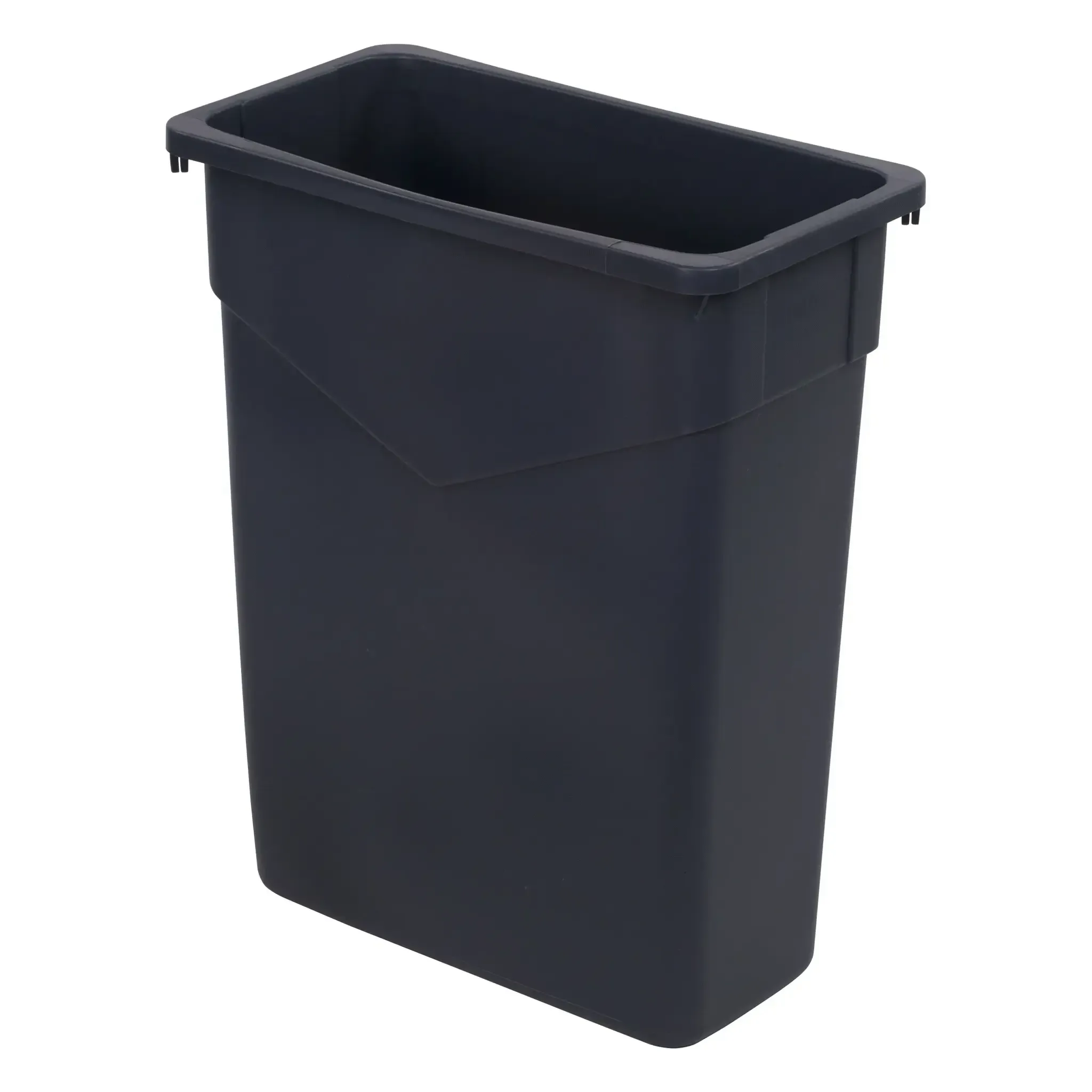 Upgrade your cooking space with the Carlisle 34201523 Trash Receptacle. Designed for indoor use, this heavy-duty, 15-gallon waste container is a must-have for any commercial restaurant. Its rectangular shape and integrated corner tabs make it easy to fit into tight spaces, while the bottom helper handles ensure effortless transportation. Made from durable polyethylene, this gray trash receptacle is built to withstand the demands of a busy kitchen. Whether you're disposing of food scraps or emptying grease traps, the Carlisle 34201523 Trash Receptacle is the perfect solution. Don't settle for subpar waste management invest in the best-in-class essentials for your restaurant today.