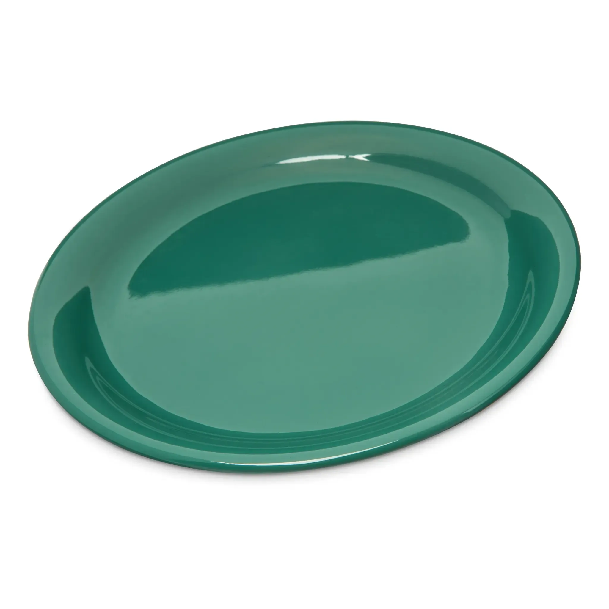 Set apart with the latest innovations, the Carlisle 4300409 Plate is a must-have for any commercial restaurant. Designed with durability in mind, this plate is made from shatter-resistant melamine, ensuring it can withstand the demands of a busy kitchen. Its narrow rim and elevated foot design add a touch of elegance to any table setting, while its meadow green color adds a pop of freshness. The plate is dishwasher safe, making cleanup a breeze, and it is also safe for temperatures up to 212F, so you can confidently serve hot or cold dishes. Plus, it is BPA-free and NSF certified, guaranteeing its safety and quality. Elevate your restaurant's dining experience with the Carlisle 4300409 Plate.
