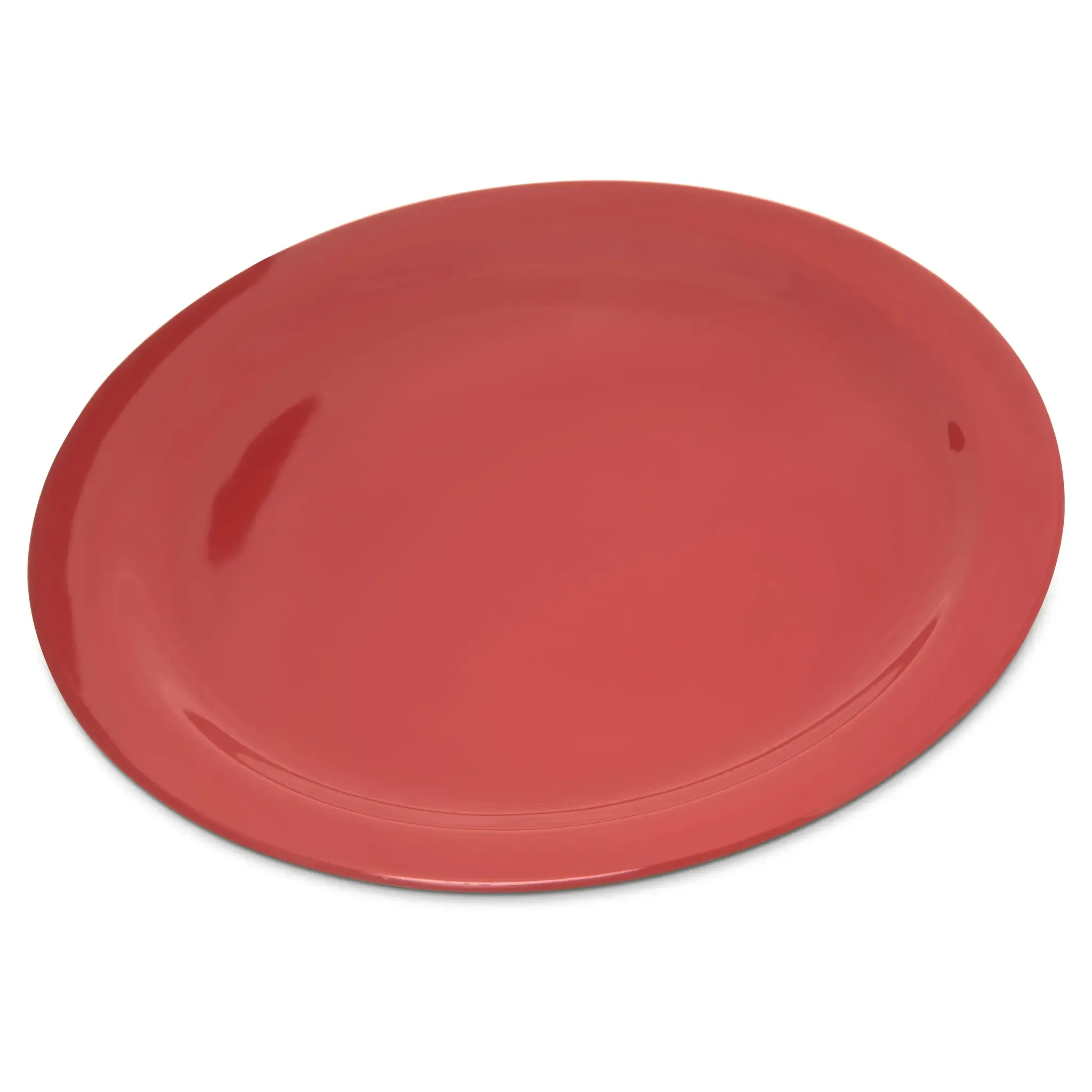 Introducing the Carlisle 4350005 Plate, Plastic a must-have for commercial restaurants looking to achieve top-notch performance. This Dallas Ware Dinner Plate is designed to withstand the demands of a busy kitchen. With a reinforced rim and foot, it offers exceptional durability, ensuring it can handle the rigors of daily use. The plate's melamine construction resists drawing heat or cold away from food, keeping dishes at the perfect temperature for longer. Plus, it is dishwasher safe, making cleanup a breeze. The stackable design maximizes storage space, allowing for efficient organization in any kitchen. In a vibrant red color, this plate adds a pop of personality to any table setting. BPA-free and NSF certified, it meets the highest standards of safety and quality.