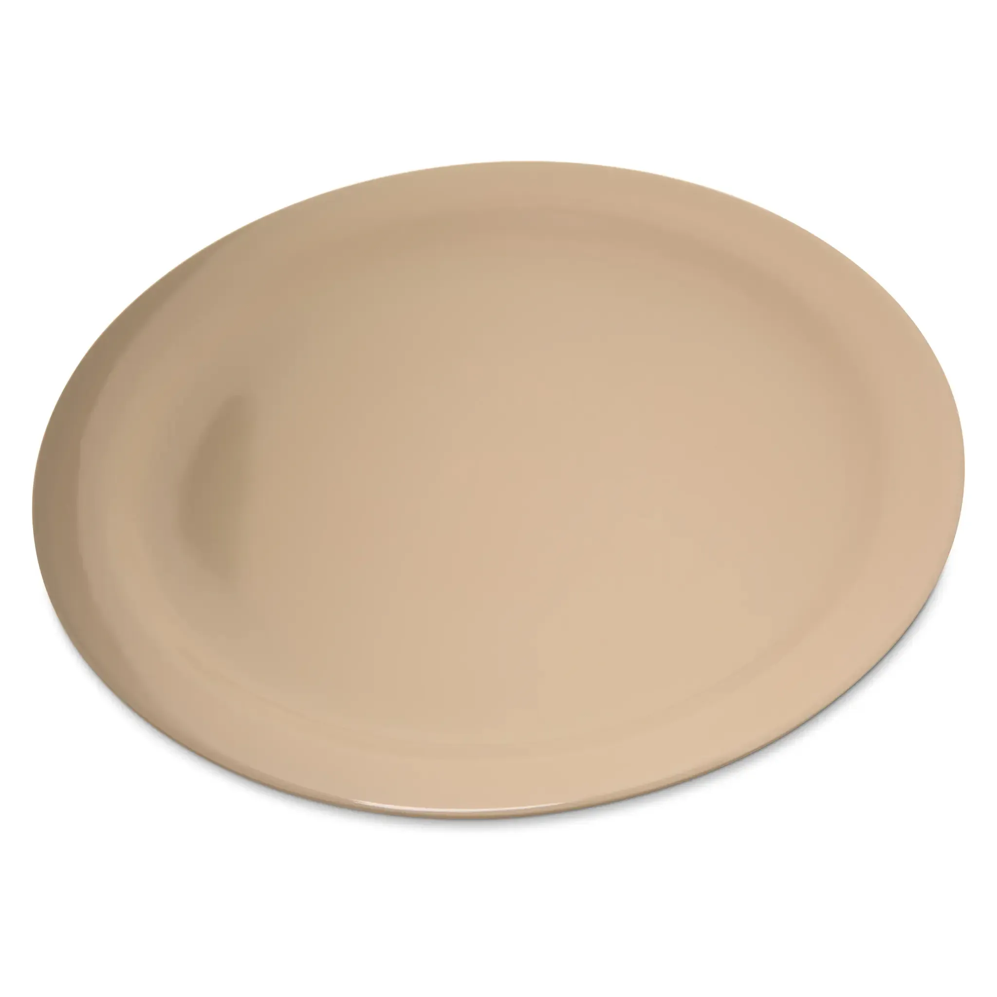 Stay ahead with premium tools with the Carlisle, 4350025, Plate, Plastic. This durable and versatile dinner plate is designed for commercial restaurant use, making it the perfect addition to any foodservice establishment. With its reinforced rim and foot, this plate is built to withstand the rigors of a busy kitchen, ensuring long-lasting performance. The 10-1/5" diameter provides ample space for serving a variety of dishes, while the stackable design allows for efficient storage. Made from melamine, this plate is dishwasher safe and resistant to drawing heat or cold away from food, keeping your dishes at the perfect temperature. The tan color adds a touch of elegance to any table setting, while the BPA-free and NSF certification guarantee the highest standards of safety and quality.