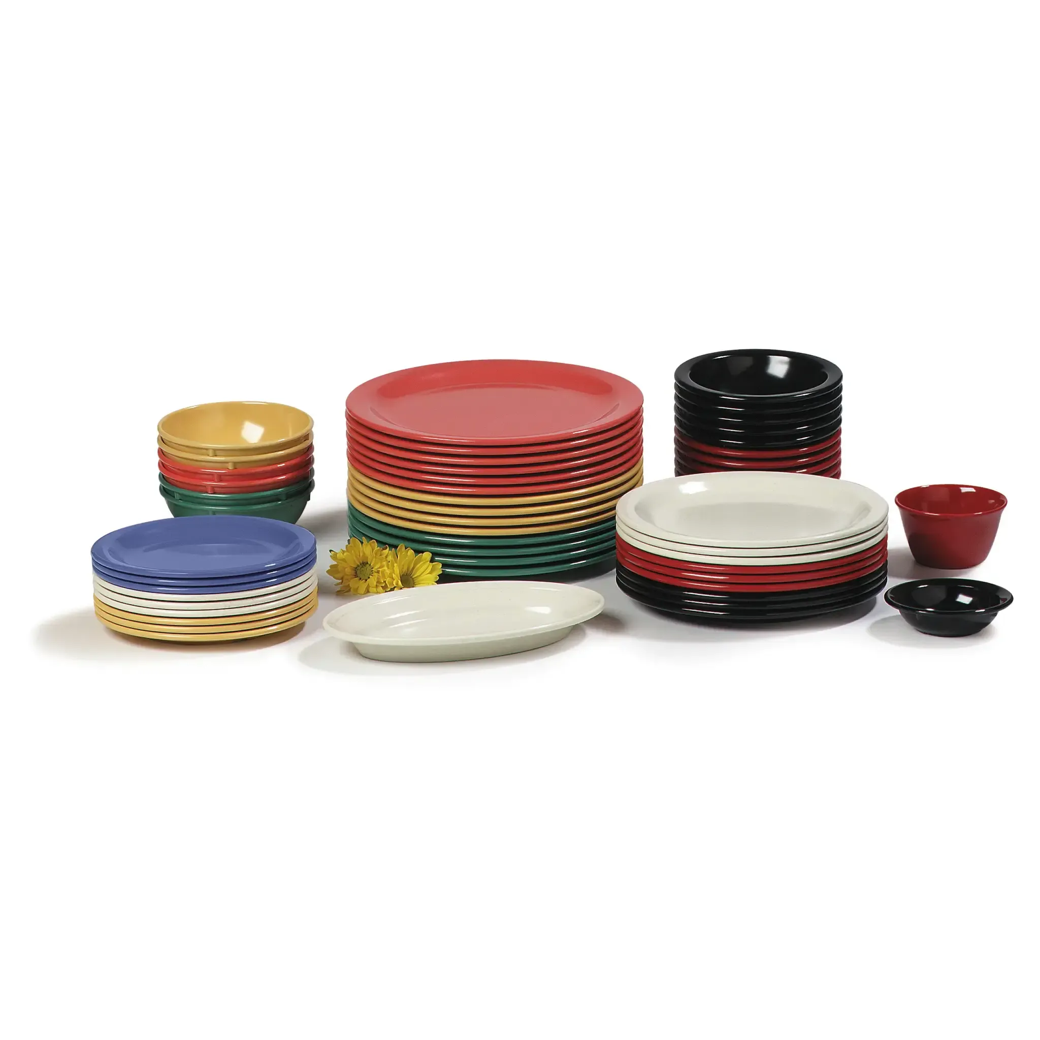 Create masterpieces with state-of-the-art tools. Introducing the Carlisle 4350102 Plate, Plastic. Designed for commercial restaurant use, this plate is a must-have for any professional kitchen. With its reinforced rim and foot, it offers exceptional durability, ensuring it can withstand the demands of a busy restaurant environment. The 9" diameter provides ample space for presenting your culinary creations, while the stackable design allows for efficient storage. Made from melamine, this plate is dishwasher safe and resistant to drawing heat or cold away from food, keeping your dishes at the perfect temperature. The white color adds a touch of elegance to any table setting, making it ideal for both casual and formal dining. BPA-free and NSF certified, this plate meets the highest standards of safety and quality. Elevate your restaurant's presentation with the Carlisle 4350102 Plate, Plastic.