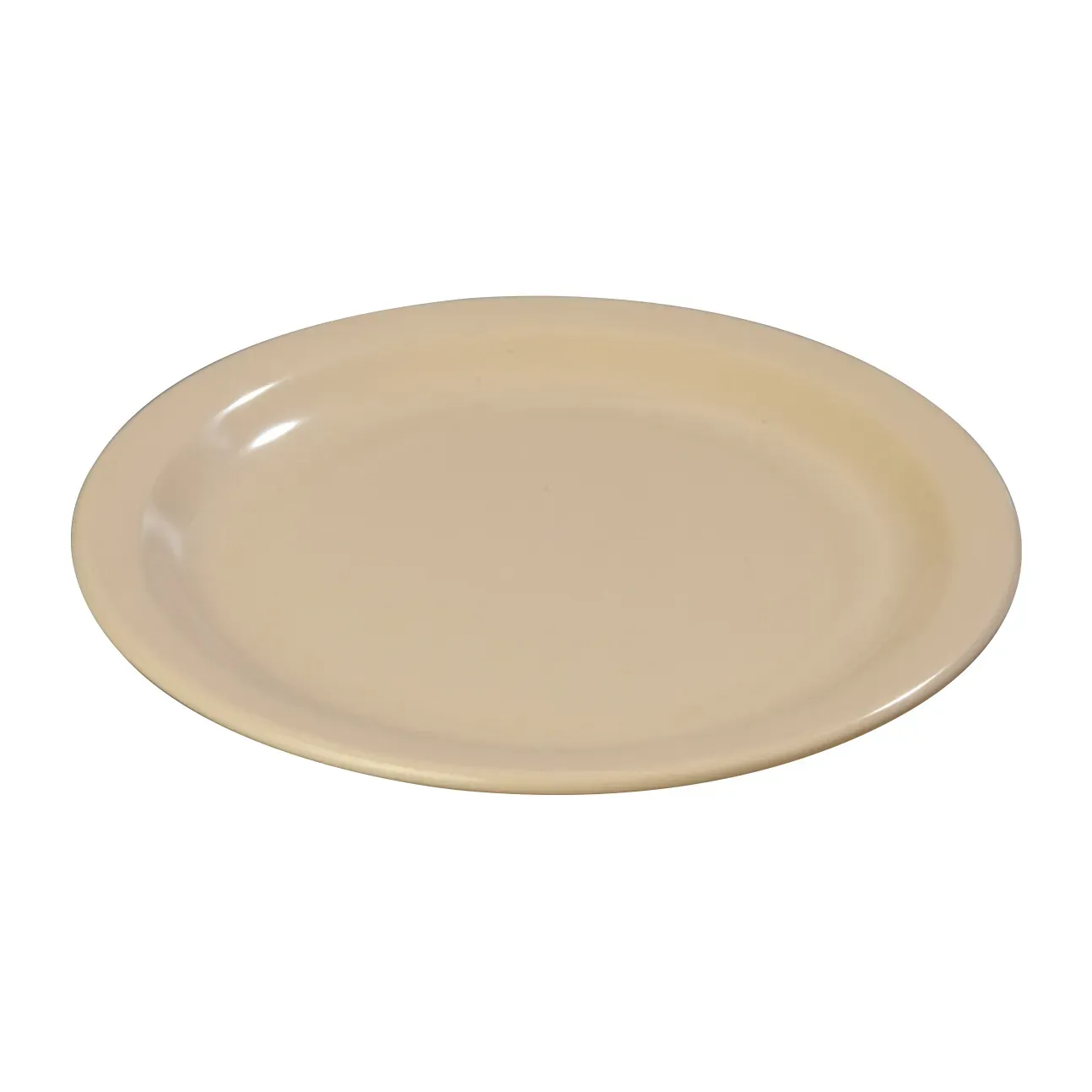 Precision in every dish is guaranteed with the Carlisle 4350125 Plate. Designed specifically for commercial restaurant use, this plastic plate is a must-have for any food establishment. With its reinforced rim and foot, it offers exceptional durability, ensuring it can withstand the demands of a busy kitchen. The 9" diameter provides ample space for serving a variety of dishes, from appetizers to main courses. Made from melamine, this plate is dishwasher safe, making cleanup a breeze. It also resists drawing heat or cold away from food, keeping your dishes at the perfect temperature. The stackable design allows for easy storage, maximizing your kitchen space. In addition, this plate is BPA-free and NSF certified, guaranteeing its safety and quality. Trust Carlisle for all your restaurant needs.