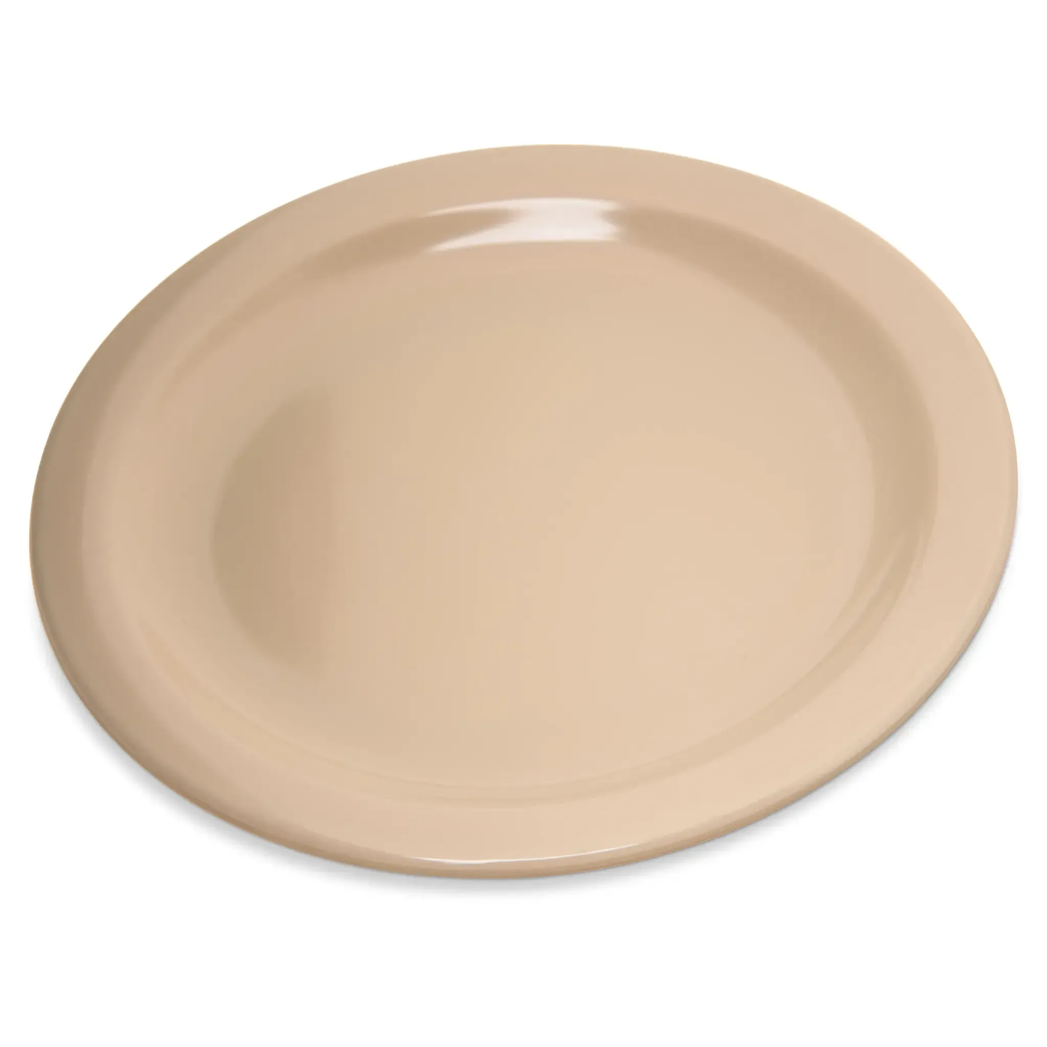 Enhance dining with precision tools. Introducing the Carlisle 4350325 Plate, Plastic a must-have for any commercial restaurant. This salad plate is designed to elevate your dining experience with its impeccable craftsmanship and practical features. Made from durable melamine, it boasts a reinforced rim and foot, ensuring long-lasting performance even in high-traffic environments. The plate's ability to resist drawing heat or cold away from food keeps your dishes at the perfect temperature, while its stackable design maximizes storage space. With a diameter of 7-1/5 inches, it is ideal for serving salads, appetizers, and desserts. The tan color adds a touch of elegance to any table setting. Dishwasher safe and BPA-free, this plate is not only convenient but also safe for your customers. Trust Carlisle, a renowned vendor in the industry, and invest in this exceptional plastic plate to enhance your restaurant's dining experience.