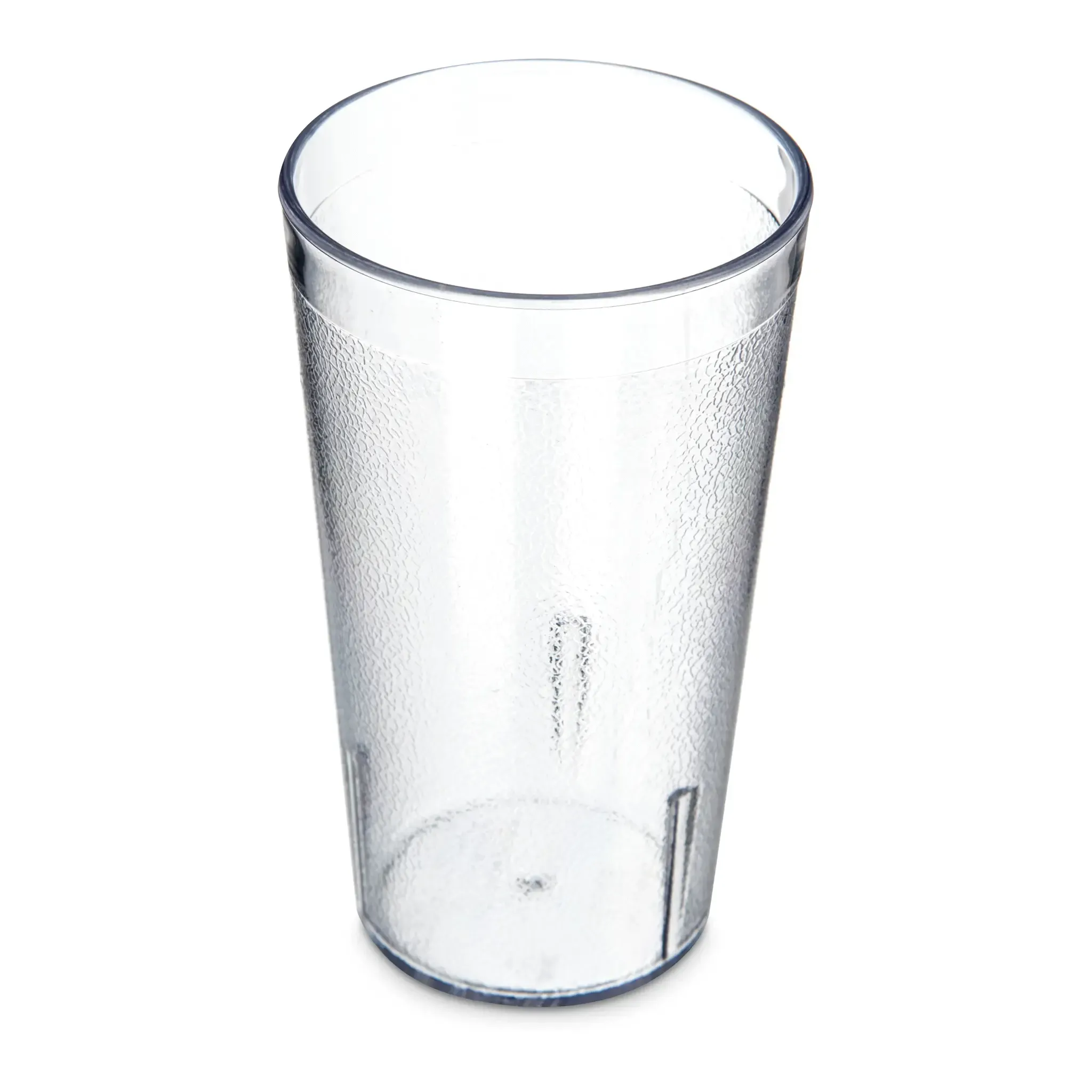 Introducing the Carlisle 521207 Plastic Tumbler, the perfect addition to any commercial restaurant setting. Crafted with excellence in mind, this stackable tumbler is designed to meet the highest standards of durability and functionality. With a capacity of 12 oz. (13.40 oz. flush fill), it is ideal for serving a variety of beverages to your customers. The tapered shape and textured exterior provide a comfortable grip, ensuring spill-free service even during busy hours. Made from SAN, a durable and dishwasher-safe material, this tumbler is built to withstand the demands of a bustling restaurant environment. Its clear design allows for easy visibility of the contents, while the BPA-free and recyclable construction ensures a safe and eco-friendly choice. Trust Carlisle, a renowned vendor in the industry, and enhance your restaurant's beverage service with the Carlisle 521207 Plastic Tumbler.