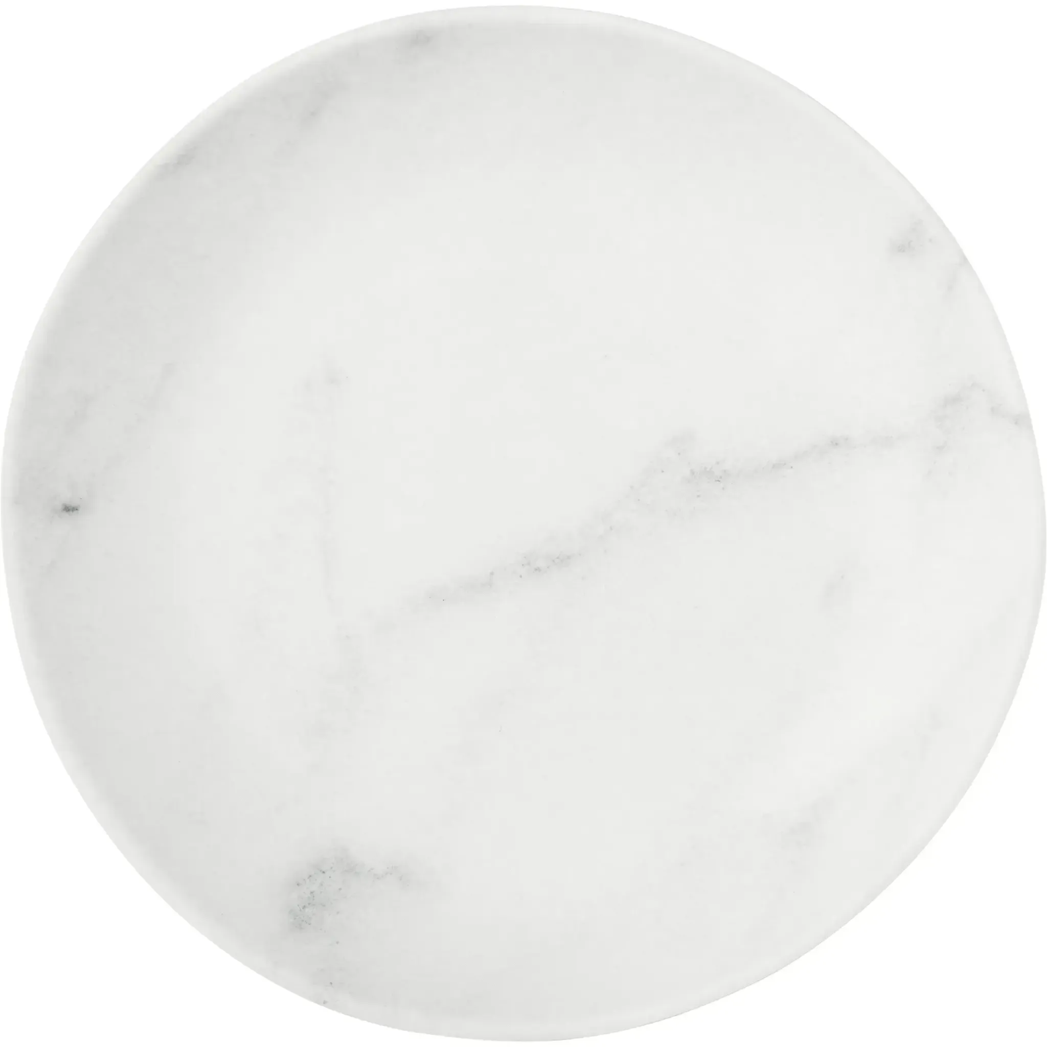 Compete and excel with the latest innovations in commercial restaurant supplies with the Carlisle 5310737 Plastic Plate. This ridge dinner plate is designed to elevate your dining experience with its sleek and modern freeform design. Crafted from durable melamine, this plate is stain, chip, and crack resistant, ensuring long-lasting use in a busy restaurant setting. The matte finish adds a touch of sophistication, while the white marble color complements any table setting. With a diameter of 10-1/2", this plate provides ample space for presenting your culinary creations. It is dishwasher safe and can withstand temperatures up to 212F, making it convenient for everyday use. Trust Carlisle for high-quality, reliable restaurant supplies that will impress your customers and enhance your dining experience.