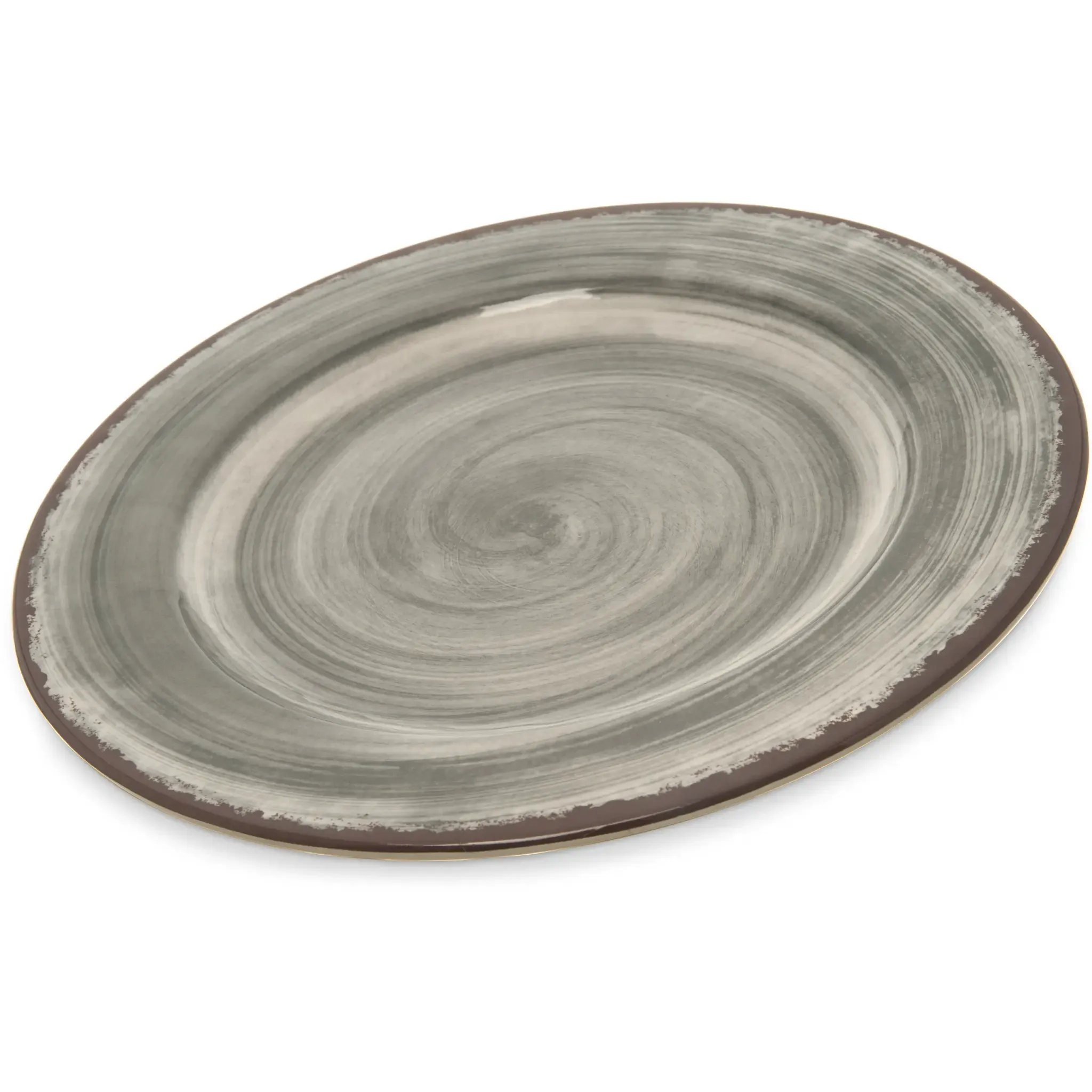 Introducing the Carlisle 5400118 Plate, Plastic a game-changer for commercial restaurants. Set apart with the latest innovations, this plate is designed to elevate your dining experience. With its 11" diameter and sleek swirl design, it adds a touch of elegance to any table setting. Made from durable melamine, it is dishwasher safe, stain and chip resistant, and can withstand temperatures up to 212°F perfect for busy restaurant kitchens. The reinforced rim and foot design ensure stability and stackability, optimizing storage space. Plus, it resists drawing heat or cold away from food, keeping your dishes at the perfect temperature. In a smoke gray color, this plate is not only stylish but also BPA-free and NSF certified for food safety.