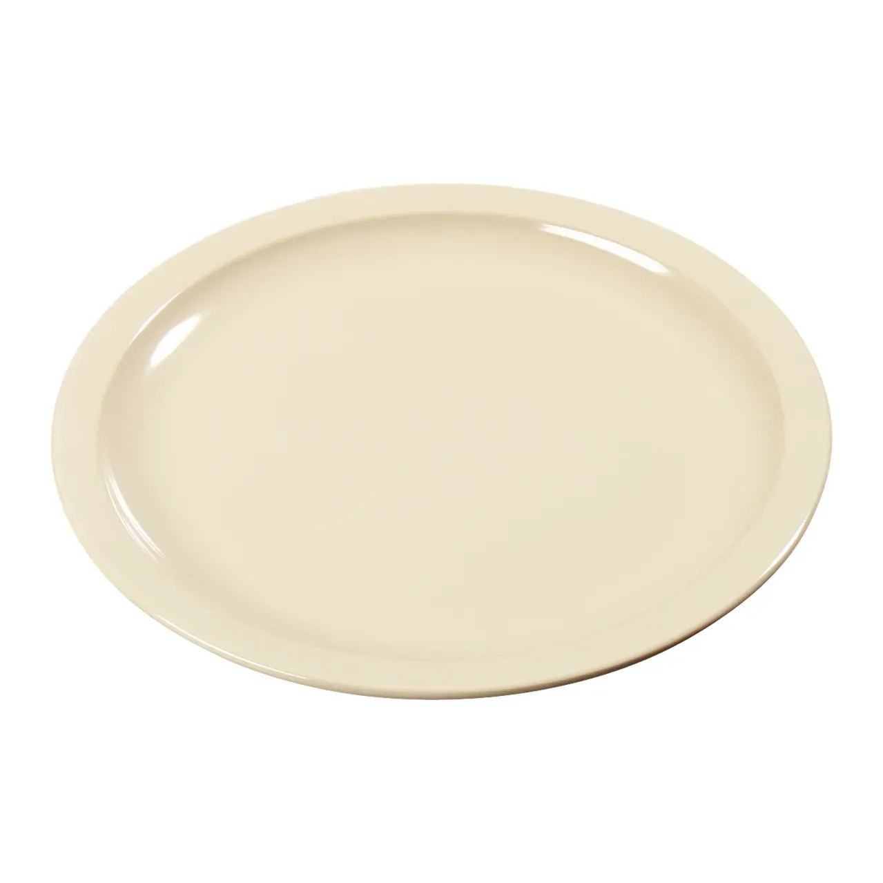 Introducing the Carlisle KL20425 Plastic Plate, the perfect addition to any commercial restaurant. Compete with superior utensils by serving your delectable creations on this durable and stylish plate. With a 6-1/2" diameter and a narrow rim, this round plate is designed to showcase your culinary masterpieces. Made from scratch/stain/chip resistant melamine, it can withstand the rigors of a busy kitchen. The elevated foot design ensures stability and prevents heat or cold from being drawn away from the food. Safe for temperatures up to 212F, this plate can handle hot and cold dishes with ease. The tan color and melamine gloss finish add a touch of elegance to any table setting. Trust Carlisle, a reputable vendor in the industry, to deliver quality and reliability. Upgrade your restaurant's tableware with the Carlisle KL20425 Plastic Plate.