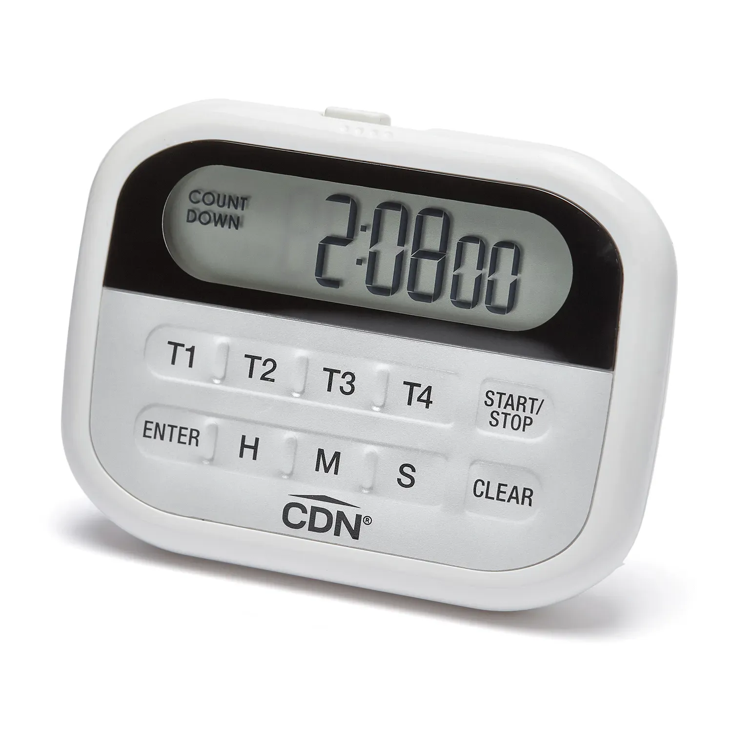 Elevate accuracy with CDN Measurement Tools, PT2, a versatile 4-event timer and clock designed specifically for commercial restaurant use. This timer boasts a wide range of features that make it an essential tool in any professional kitchen. With its programmable and dual function capabilities, you can easily track multiple cooking processes simultaneously, ensuring precise timing for each dish. The PT2's memory function allows you to save frequently used settings, saving you time and effort. Its loud alarm and long alarm duration ensure you never miss a critical moment, even in a busy kitchen environment. Made from food-safe ABS plastic, this timer is both durable and safe to use. Its sliding mode switch, pocket clip, magnet, and stand provide multiple options for convenient placement. Trust CDN Measurement Tools to deliver accurate timing and enhance efficiency in your commercial restaurant operations.