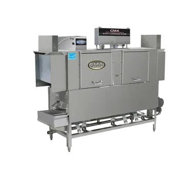 Master your restaurant's kitchen with the CMA Dishmachines EST-66 w/E Temp Dishwasher, Conveyor Type. This energy-efficient dishwasher is designed to handle the high demands of a commercial restaurant. With its dual tank design and four-stage wash process, it can clean up to 249 racks per hour, ensuring that your dishes are always sparkling clean and ready for service. The low temp chemical sanitizing or high temp sanitizing options give you flexibility based on your specific needs. The automatic start/stop and auto-fill features make operation a breeze, while the automatic water control system and soil purging system ensure optimal performance and efficiency. The stainless steel construction and chemical-resistant industrial heaters guarantee durability and longevity. With the CMA Dishmachines EST-66 w/E Temp Dishwasher, Conveyor Type, you can streamline your dishwashing process and focus on delivering exceptional dining experiences to your customers.