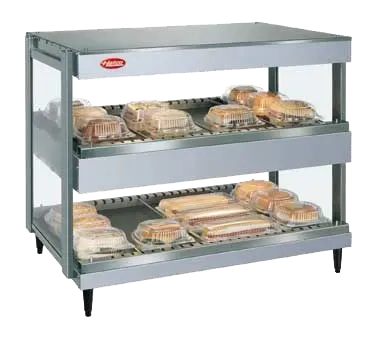 Enhance your commercial kitchen with the Hatco GRSDH-24D Merchandisers. This Glo-Ray Merchandising Warmer is designed to showcase your delicious food items while keeping them at the perfect temperature. With its pass-thru design and (10) rods, this merchandiser allows for easy access and maximum visibility. The (2) horizontal shelves provide additional space for displaying a variety of products. Made with stainless/aluminum construction, this merchandiser is not only durable but also easy to clean, ensuring a hygienic environment in your restaurant. The 4" legs provide stability and make it easy to move the unit when needed. With 1660 watts of power, this merchandiser is capable of efficiently heating your food items. It is cULus, UL EPH Classified, and ANSI/NSF 4 certified, guaranteeing its quality and safety. Made in the USA, the Hatco GRSDH-24D Merchandisers are the perfect addition to any commercial restaurant, allowing you to showcase your food in an attractive and efficient way.