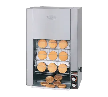 Serve with pride with the Hatco TK-135B Conveyor Toaster. This vertical conveyor toaster is designed for commercial restaurant use, making it the perfect addition to any bustling kitchen. With its impressive capacity of approximately 1320 units per hour, you can efficiently toast a large volume of buns, bread, and other items to perfection. The stainless steel construction ensures durability and longevity, while the NSF, UL, UL EPH Classified, ANSI/NSF 4, and CSA certifications guarantee its safety and compliance with industry standards. The compact countertop design allows for easy placement and saves valuable space in your kitchen. Made in the USA by Hatco, a trusted name in the industry, this conveyor toaster is a reliable and efficient solution for your toasting needs. Upgrade your restaurant's toasting capabilities with the Hatco TK-135B Conveyor Toaster.