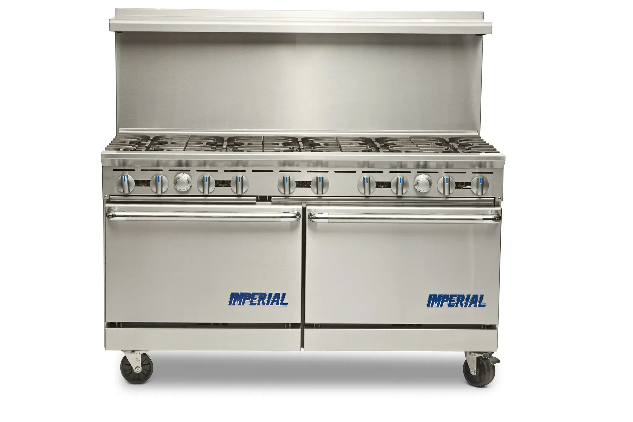 Streamline your restaurant cooking operations with the Imperial IR-10 Range. This 60" gas restaurant range is designed to meet the demands of a busy commercial kitchen. With 10 open burners and 2 standard ovens, you'll have plenty of cooking space to prepare multiple dishes simultaneously. Each oven comes with a chrome rack, allowing you to cook different items at different temperatures. The removable crumb tray makes cleaning up a breeze, while the stainless steel construction ensures durability and easy maintenance. The range also features a front, sides, backguard, shelf, landing ledge, and kick plate, all made of stainless steel. The adjustable feet and 6" legs provide stability and flexibility in positioning the range. With a powerful 390,000 BTU output, this range delivers exceptional cooking performance. NSF, CE, CSA Flame, and CSA Star certifications guarantee its safety and quality. Upgrade your restaurant kitchen with the Imperial IR-10 Range and experience efficient and reliable cooking every day.