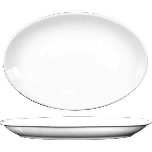 Elevate restaurant reputation with quality using the International Tableware DO-13 Platter. This oval coupe platter is designed to impress with its sleek European White porcelain finish. Crafted with fully vitrified material, it ensures durability and resistance to chipping, making it perfect for the fast-paced environment of a commercial restaurant. The 11-3/4" x 8" size provides ample space for presenting a variety of dishes, from appetizers to main courses. The platter is microwave and dishwasher safe, allowing for easy reheating and cleaning. With its lead-free composition, it guarantees the safety of your customers. Trust in International Tableware to deliver exceptional quality and style to your dining establishment.