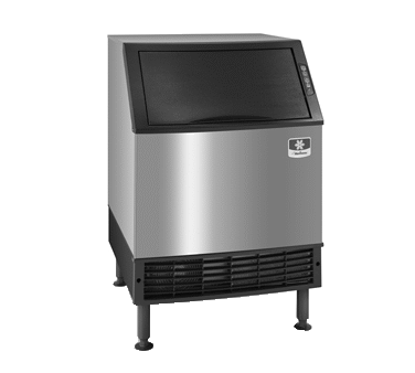 Ignite culinary passion with the Manitowoc UYF0240A-161B Ice Maker with Bin. This cube-style ice maker is a must-have for any commercial restaurant. With its compact design, measuring 26"W x 28"D x 38-1/2"H, it can fit seamlessly into any kitchen space. The air-cooled, self-contained system ensures efficient ice production, with a capacity of up to 219 lb/24 hours at 70/50. The 90 lb ice storage capacity means you'll never run out of ice during peak hours. The electronic controls make operation a breeze, allowing you to easily adjust settings to meet your specific needs. The half-dice size cubes are perfect for a variety of beverages and cocktails. With 6" adjustable legs with flanged feet, this ice maker is stable and easy to clean. NSF and cULus certified, you can trust in the quality and reliability of Manitowoc. Elevate your restaurant's ice production with the Manitowoc UYF0240A-161B Ice Maker with Bin.