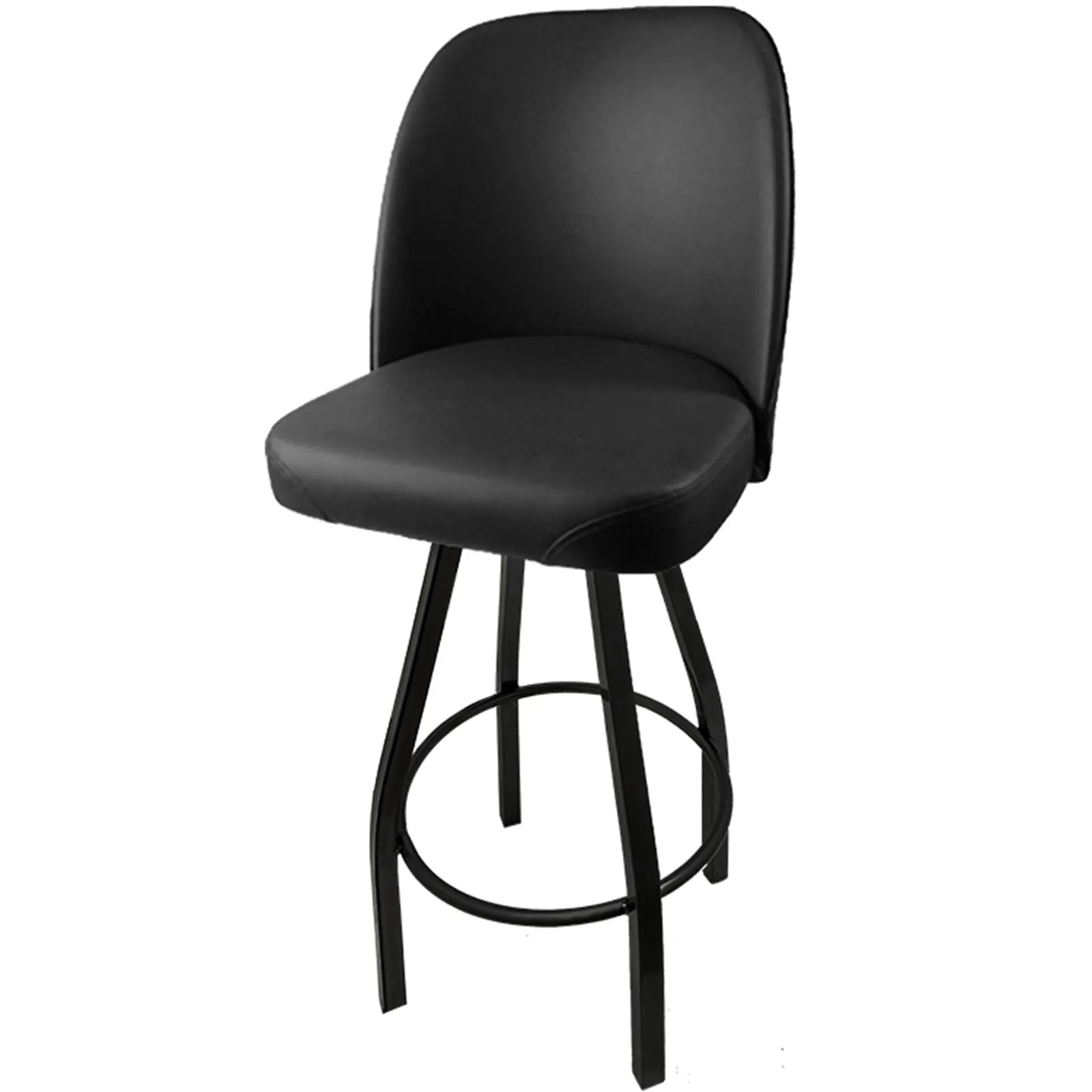 Enhance comfort, style, and atmosphere in your commercial restaurant with the Oak Street SL2136-BLK Bar Stool. This swivel bar stool is designed to provide ultimate comfort to your guests, thanks to its upholstered bucket seat and waterfall front. The 4-degree imported slant swivel allows for easy movement, while the single footring adds stability and support. The frame features a sleek black powder coat finish, adding a touch of sophistication to your establishment. With non-marring poly glides, you can protect your floors from scratches and scuffs. The black vinyl seat is shipped unattached, making it easy to assemble and customize to your liking. Whether you're running a bar, pub, or restaurant, this Oak Street bar stool is the perfect addition to elevate your space and create a welcoming ambiance.