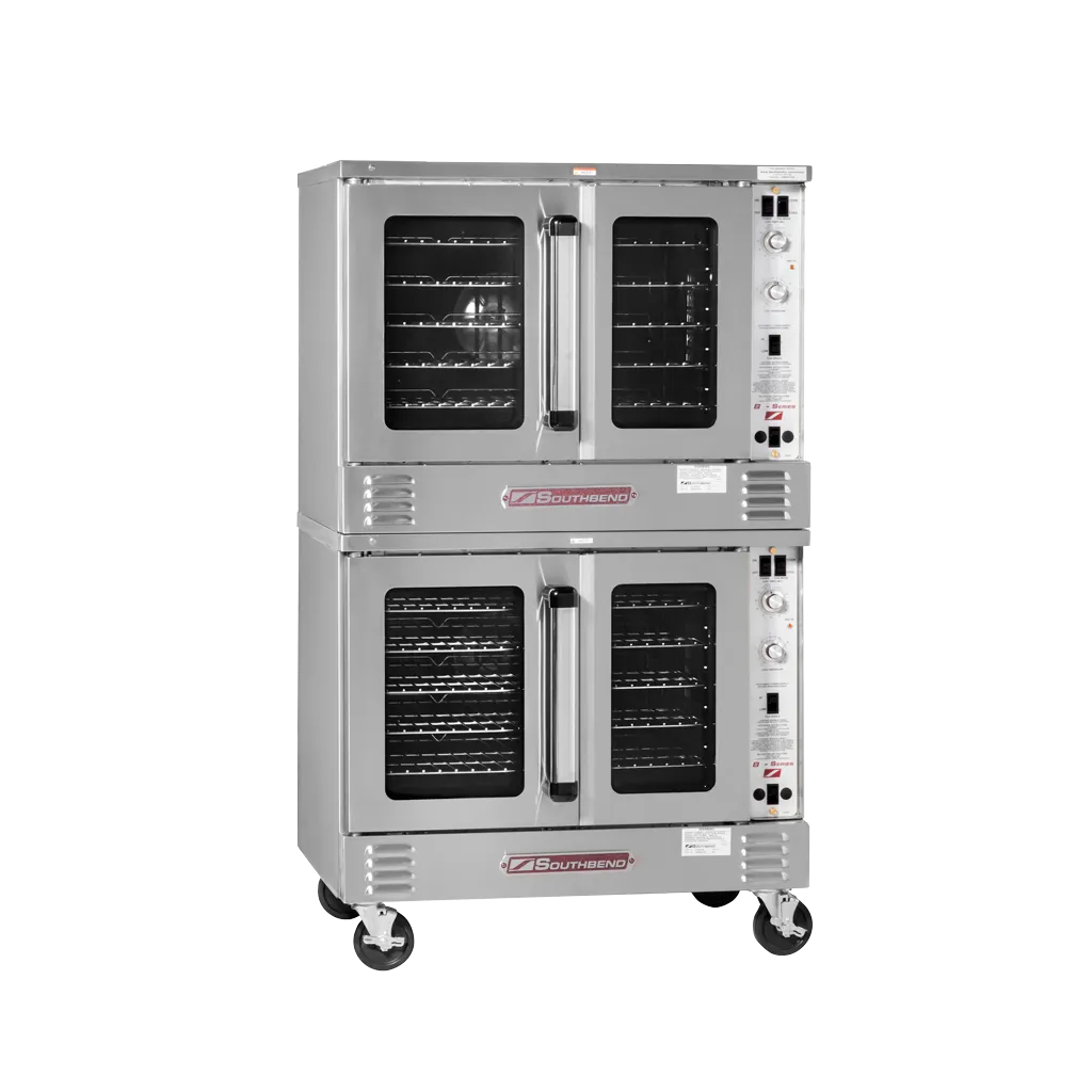 This Platinum Series Convection Oven is a ventless, electric, double deck, standard cavity depth, 15kW of power, with standard controls and dependent doors. This series features a stainless steel exterior. Standard Depth ovens and accommodate one full size (18" x 26") sheet pan per oven rack left to right in the oven.